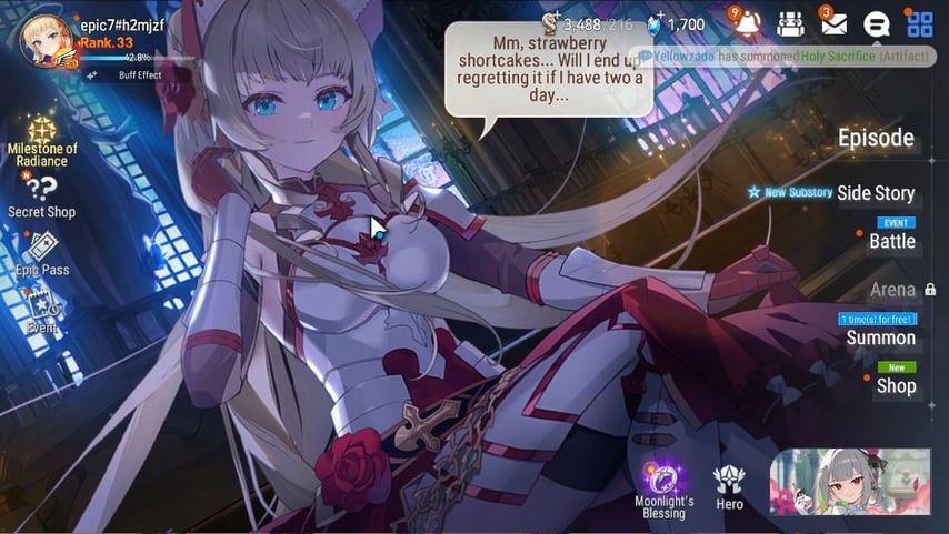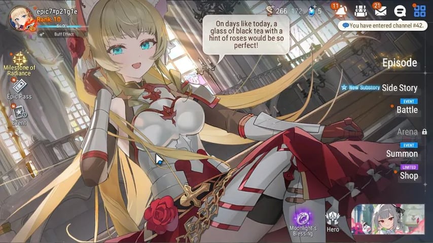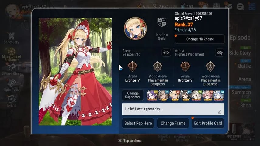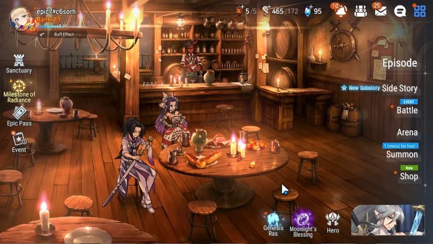 A conclusão da história desbloqueia as fases de farming e o acesso aos eventos. Ao comprar contas de Epic Seven com episódios finalizados, tudo é liberado imediatamente. Contas inacabadas exigem a conclusão dos capítulos da história antes de acessar determinado conteúdo.