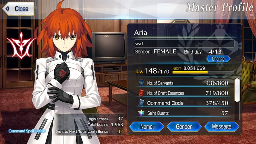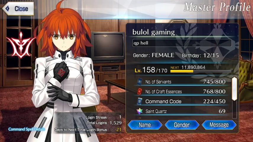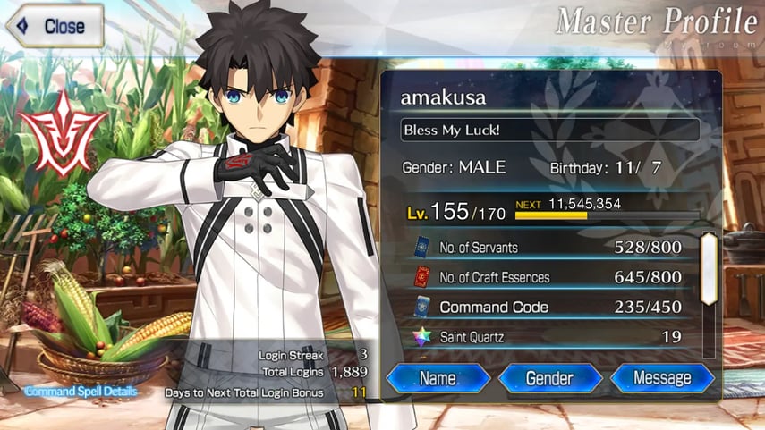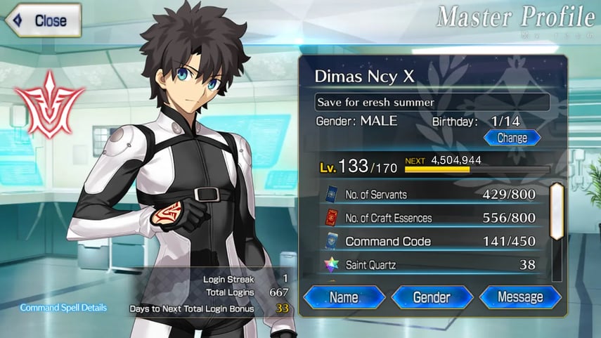 FGO363: NA | Lv158 | 1529 days| 33 SSR | 55 WNP (ARC NP5 & VOY NP5) | Black Grail 20/20| 33 SSR Ascensions| 59 Golden Fruits | 28 Crystallized Lores | 8 Holy Grails | 67M QP