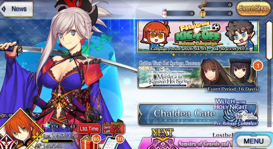 FGO357: NA ⸱ 59 with NP ⸱ GOOD WNP Servant ⸱ 60 Fruit ⸱ 24 Lore ⸱ 49 Grail