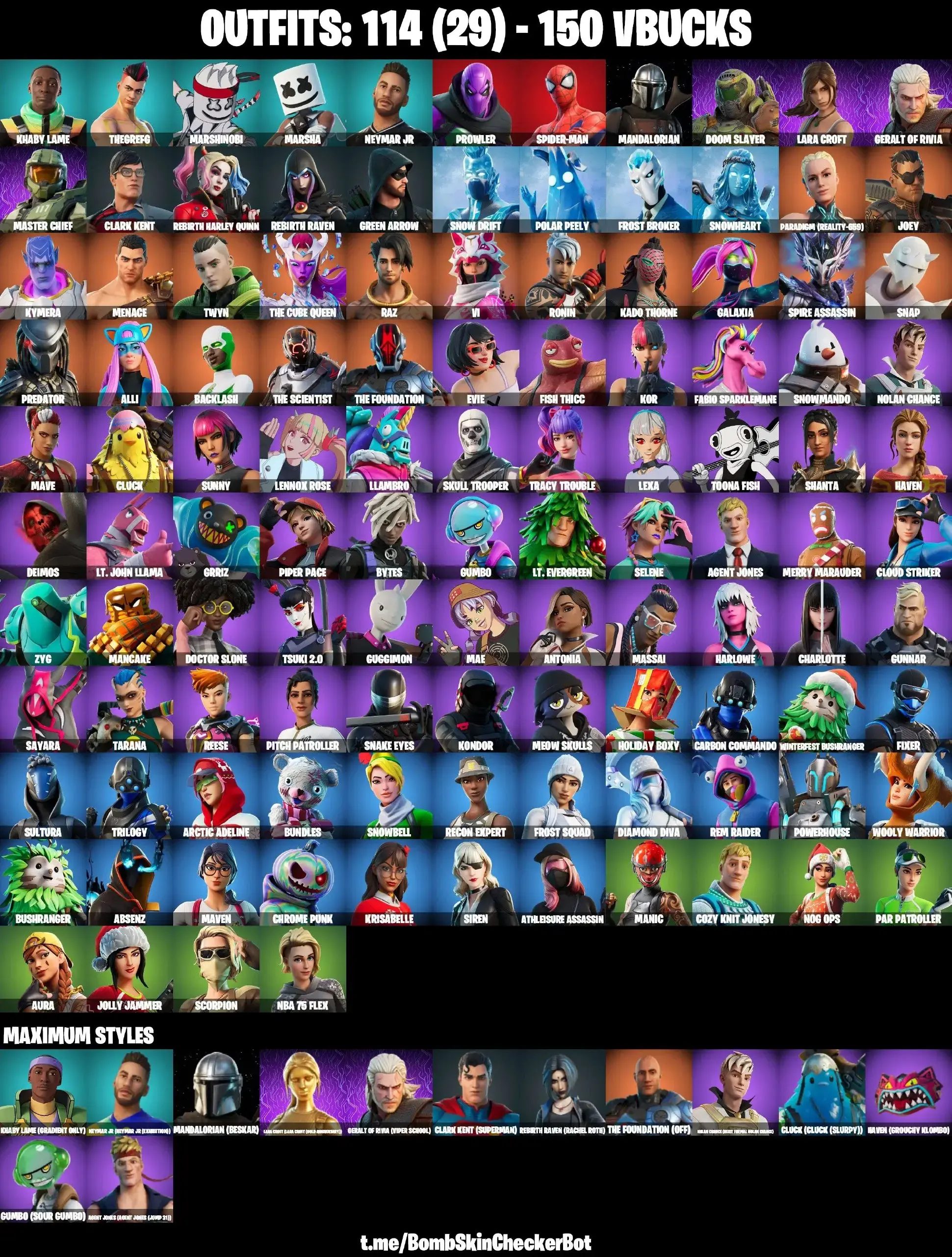 ❤️ 114 SKINS ❤️ JABBA SWITCHWAY ❤️ BACKLASH ❤️ SNAKE EYES ❤️ GOLDEN LARA CROFT ❤️ FULL BESKAR MANDALORIAN ❤️ RACHEL ROTH ❤️ TRACY TROUBLE ❤️ MASTER CHIEF ❤️ SKULL TROOPER ❤️ SPIDER-MAN ❤️ LAUGH IT UP ❤️ INTRODUCING ❤️ STAR WAND ❤️