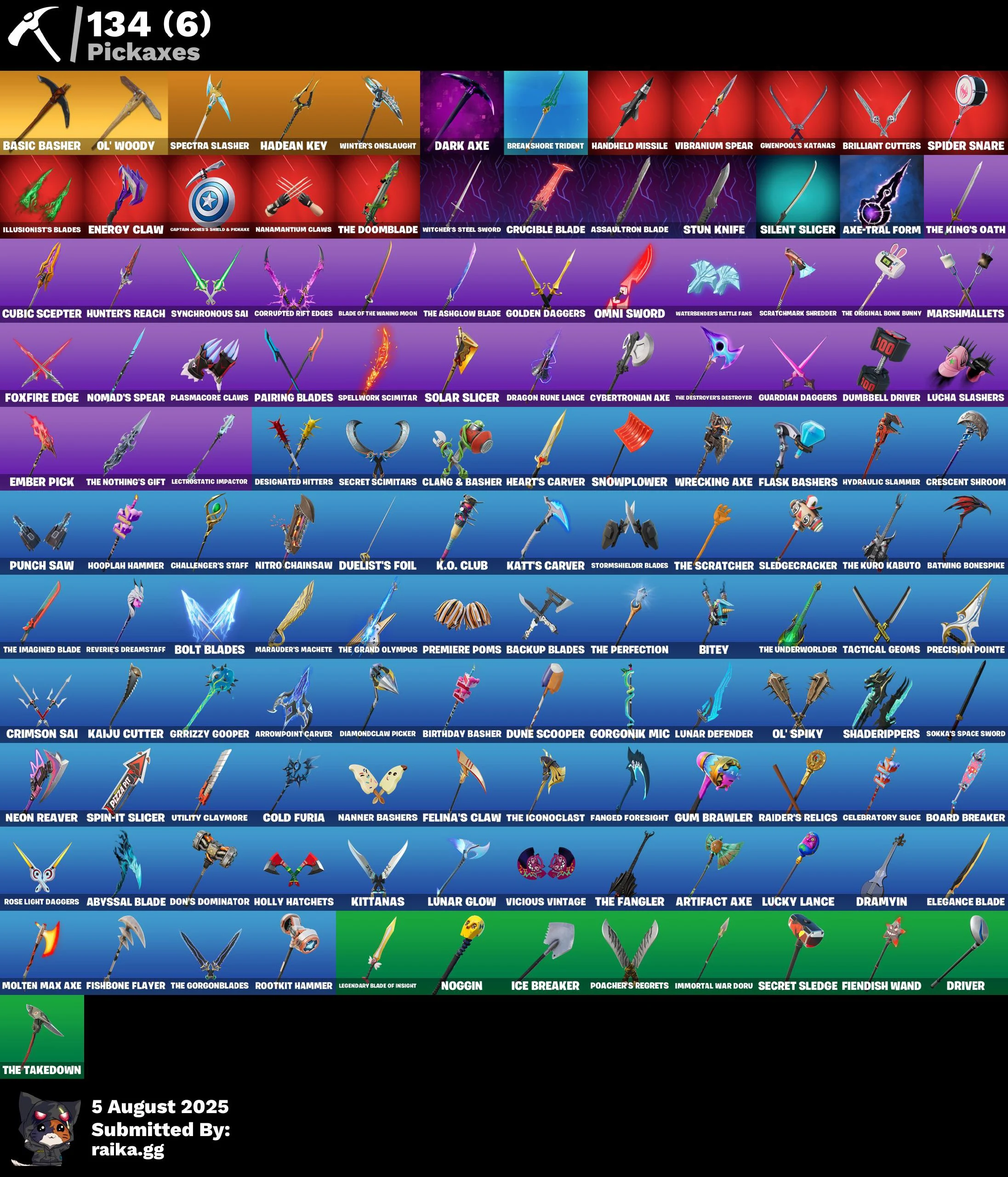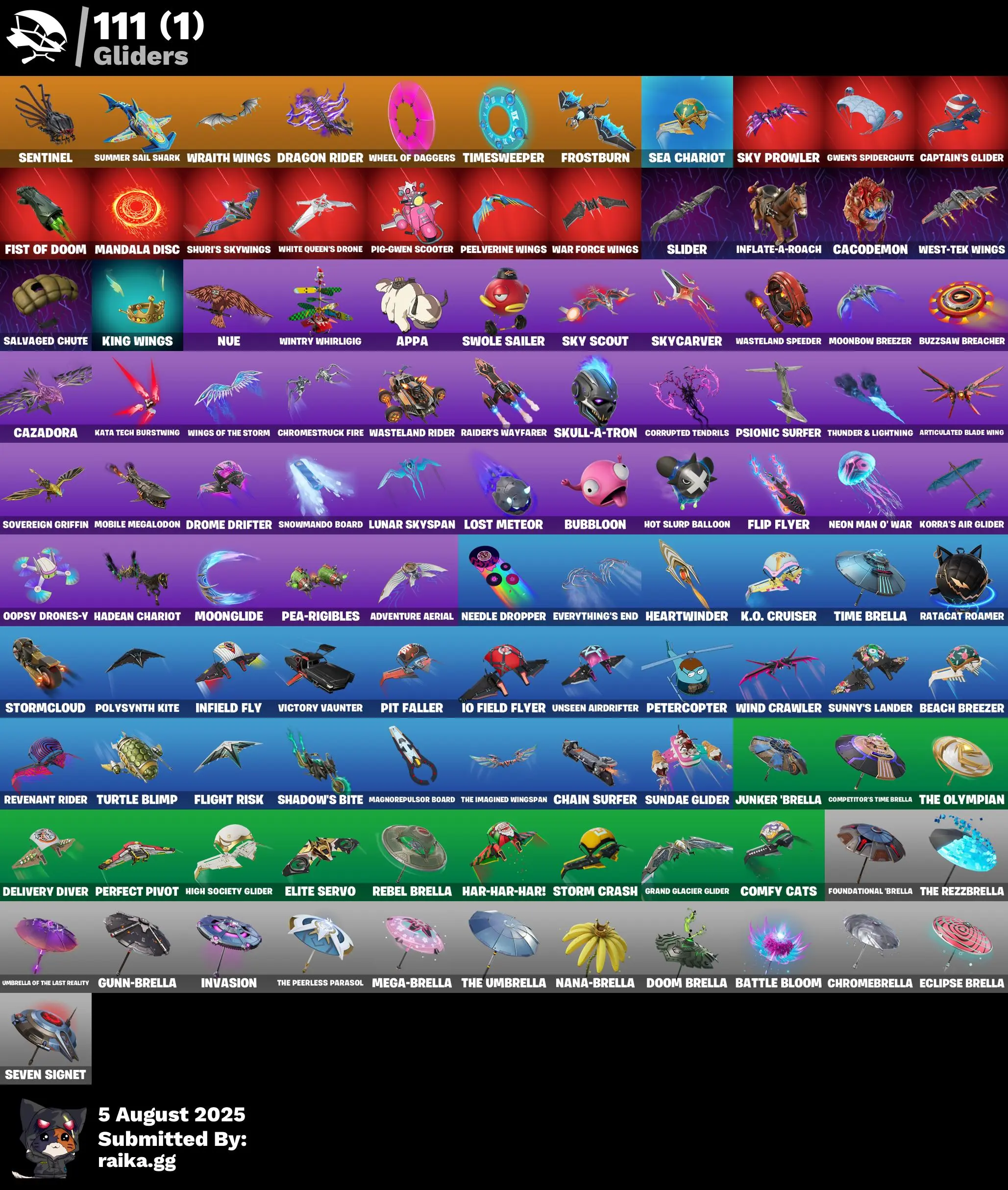 118 skins | Get Griddy❄️Spider-Gwen❄️Hadean Key❄️Tempest Flight❄️Rollie❄️Dumbbell Driver❄️Poacher's Regrets❄️Dirtbike Challenge❄️Assaultron Blade❄️Shuri❄️High Society Glider❄️Vengeance Jones❄️Kado Thorne❄️Sky Prowler❄️Corrupted Tendrils D6163