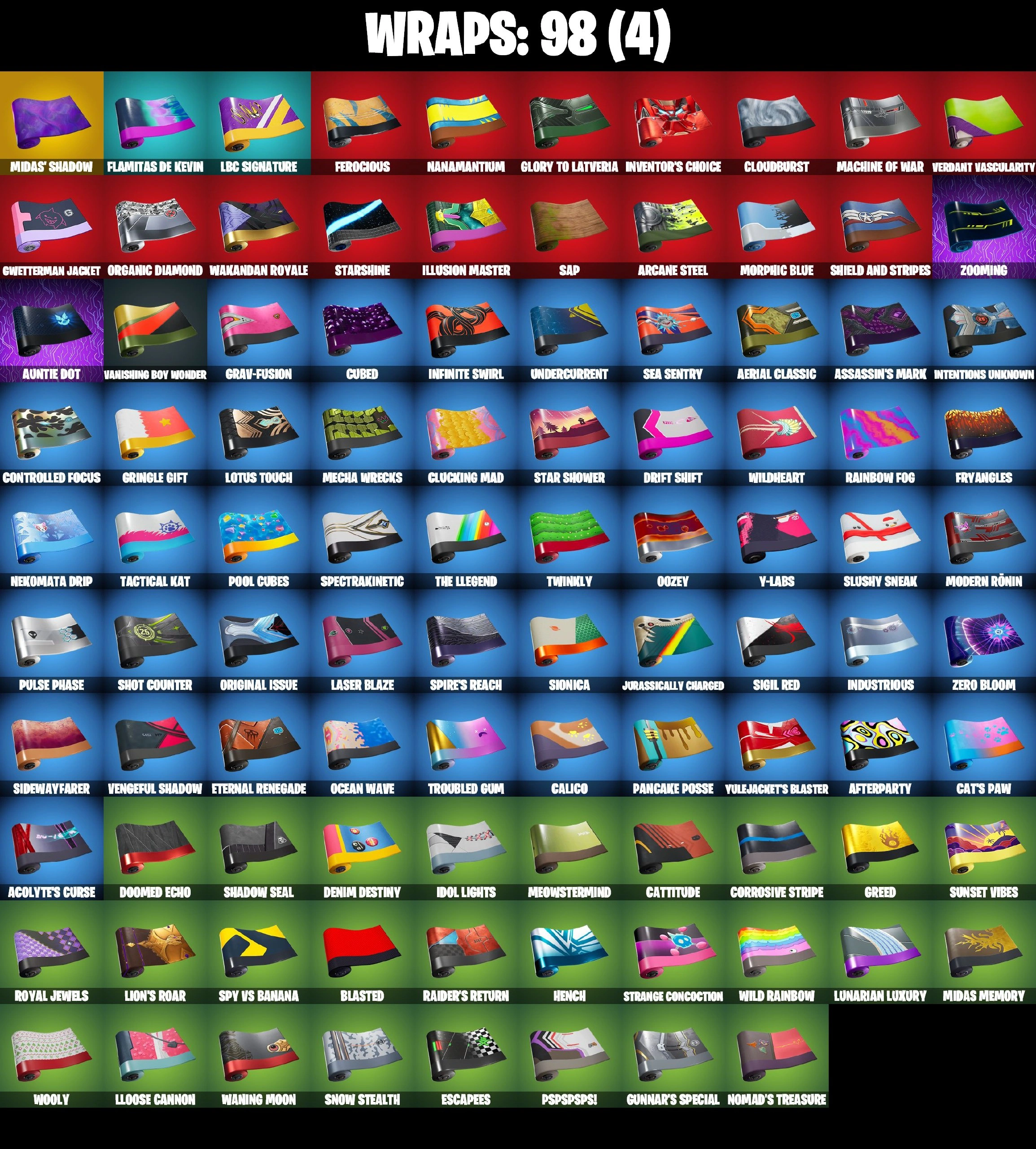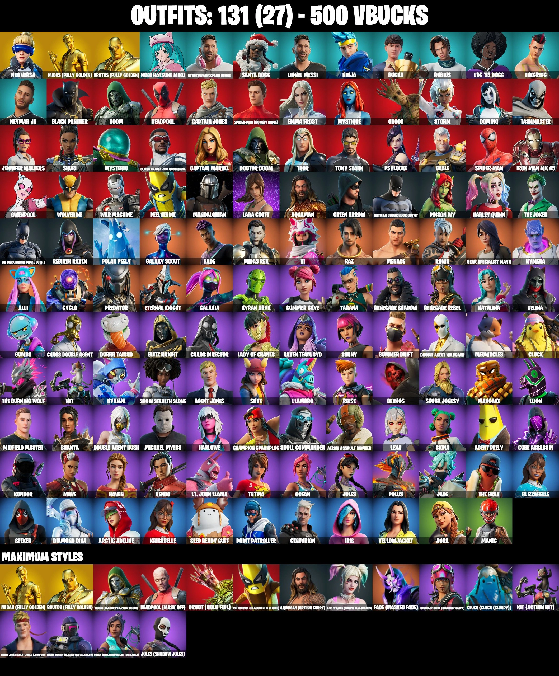 131 SKINS | NEO VERSA | GO MUFASA | JABBA SWITCHWAY | GET GRIDDY | HOLO FOIL GROOT | LARA CROFT | MANDALORIAN | SPIDER-MAN NO WAY HOME | SPDIER-MAN | DOMINO | POISON IVY | SUMMER SKYE | LAUGH IT UP | GOLDEN MIDAS | GALAXIA | VI |