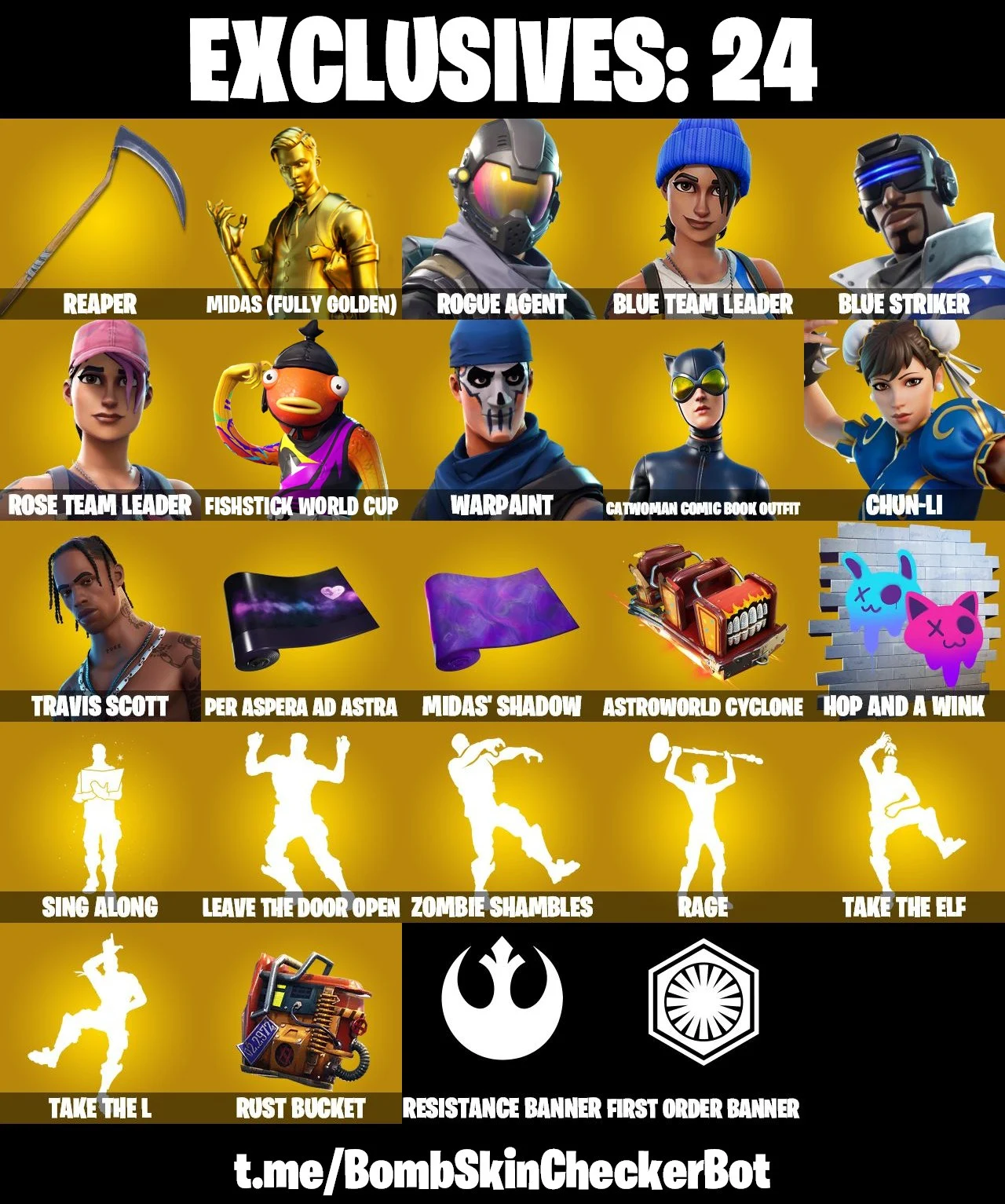 【142 SKINS】 TRAVIS SCOTT ❤️ CHUN-LI ❤️ ROGUE AGENT ❤️ TAKE THE L ❤️ (PC/PSN/XBOX)