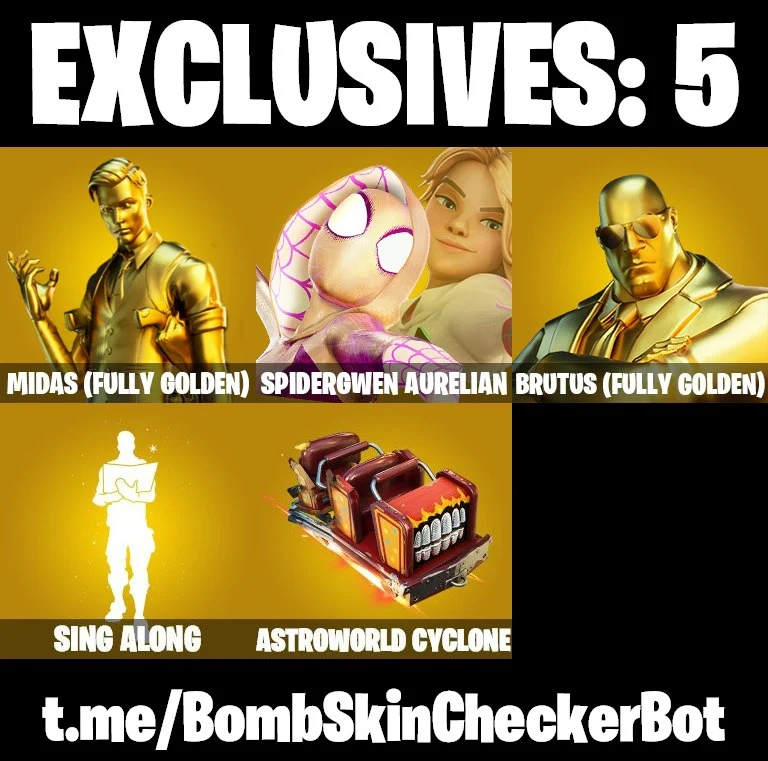🔮166 Skins🔮 Spidergwen (Aurelian)💎Midas (Fully Golden)💎Astrea💎Veronika💎Polar Peely💎Krisabelle💎Meow Skulls💎Eren Jaeger💎Khaby Lame💎Ashoka Tano💎Darth Maul💎Doom Slayer