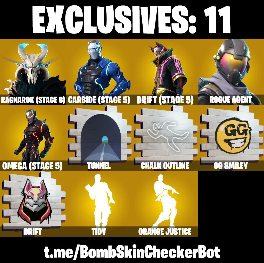 🔮27 Skins🔮 Omega (Stage 5)💎Rogue Agent💎Tidy💎Ragnarok (Stage 6)💎Carbide (Stage 5)💎Orange Justice