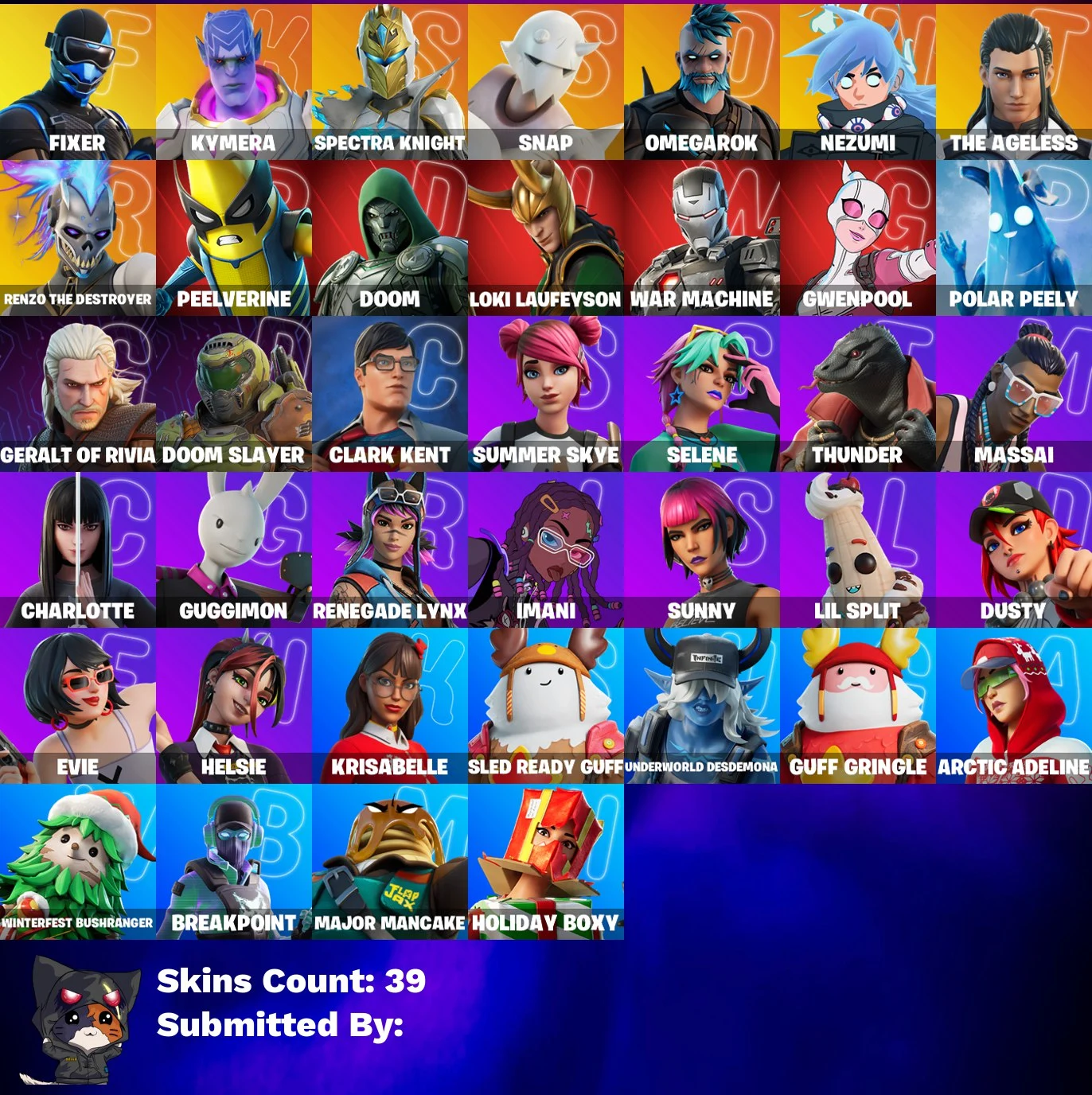 β39 SKINS π EMAIL CAN CHANGE π FIXER π KYMERA π SPECTRA KNIGHT π SNAP π OMEGAROK π NEZUMI π THE AGELESS π RENZO THE DESTROYER π PEELVERINE π DOOM π LOKI LAUFEYSON π WAR MACHINE π GWENPOOL π POLAR PEELY π GERALT OF RIVIA π 500 VB
