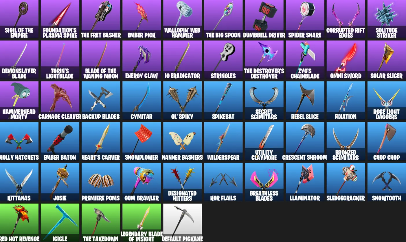 40 skins | Sultura | Torin | Driftwalker | Joey | Ronin | The Foundation | Kymera | Carnage | Spider-Man | Polar Peely | Rick Sanchez | Willow