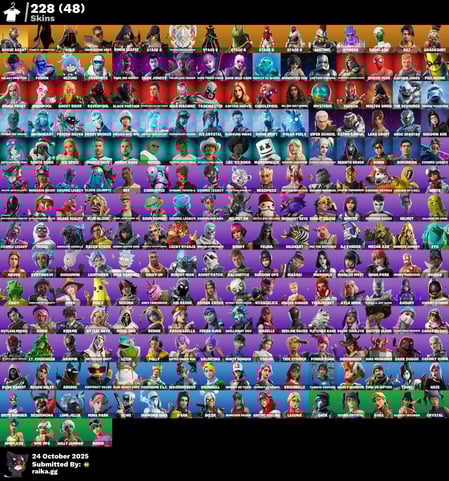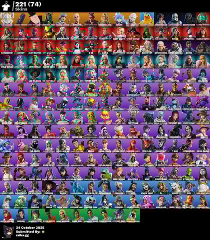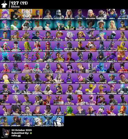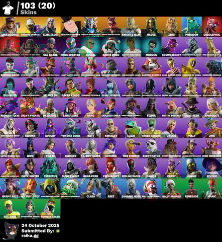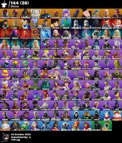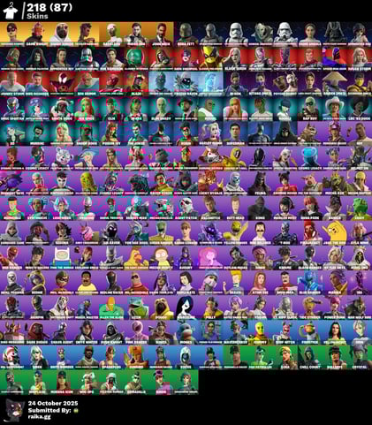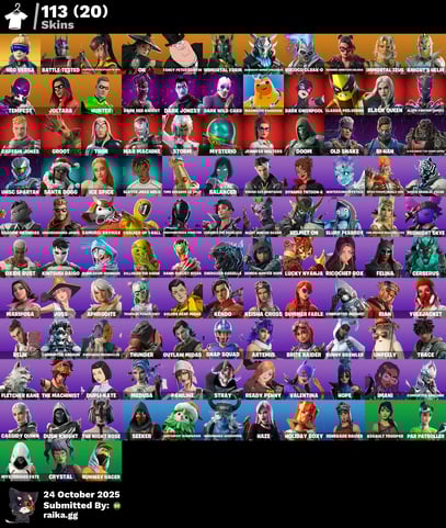 50 skins | Captain Jones🐔Arachne🐔Mystica🐔Geralt of Rivia🐔Renzo the Destroyer🐔Peelverine🐔Shuri🐔Valeria🐔Montague🐔The Ageless🐔Peter Griffin🐔The Rogue LAROI🐔Catwoman Zero🐔Doom🐔X-23🐔Doom Slayer🐔Nezumi🐔War Machine🐔Mysterio🐔Mizuki D5125