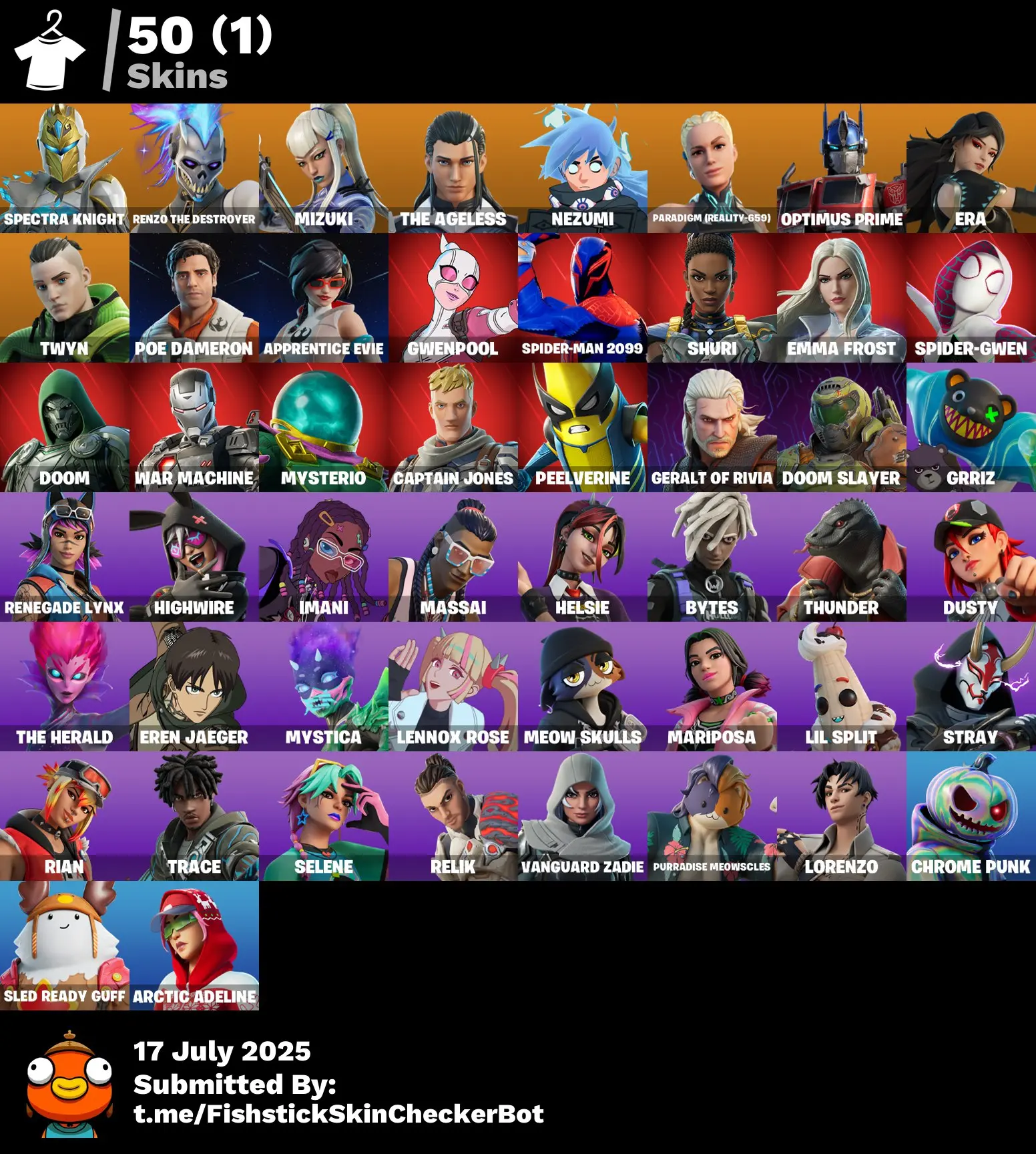 🦋 50 Skins [PC/PSN/XBOX] 🛡️ Spectra Knight 💥 Renzo the Destroyer 🌊 Mizuki 👑 The Ageless 🌙 Nezumi 💠 Paradigm 🤖 Optimus Prime 🪄 FTN110