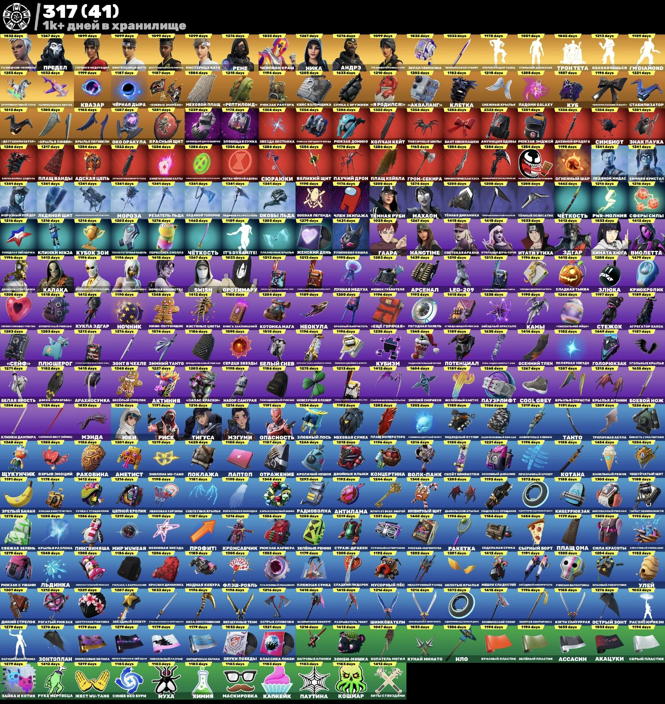 An account with 809 skins 70% a lot of skins, pickaxes, hang and emotes,exclusives