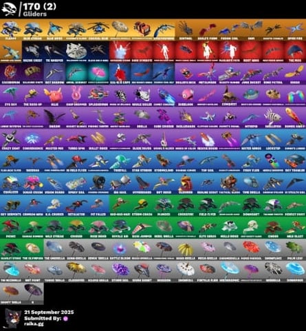 Ariana Grande é uma roupa da Série Ícone em Fortnite lançada em 5 de agosto de 2021, durante o Capítulo 2 Temporada 7. A skin apresenta dois estilos selecionáveis. O estilo padrão com cabelo platinado que se assemelha à sua aparência no videoclipe Rain On Me, da Lady Gaga, e o estilo Dé" de Rift Ariana com cabelo castanho e uma roupa inspirada em cristais. A skin foi lançada juntamente com o evento de concerto no jogo Rift Tour, que celebrou a história do Fortnite.