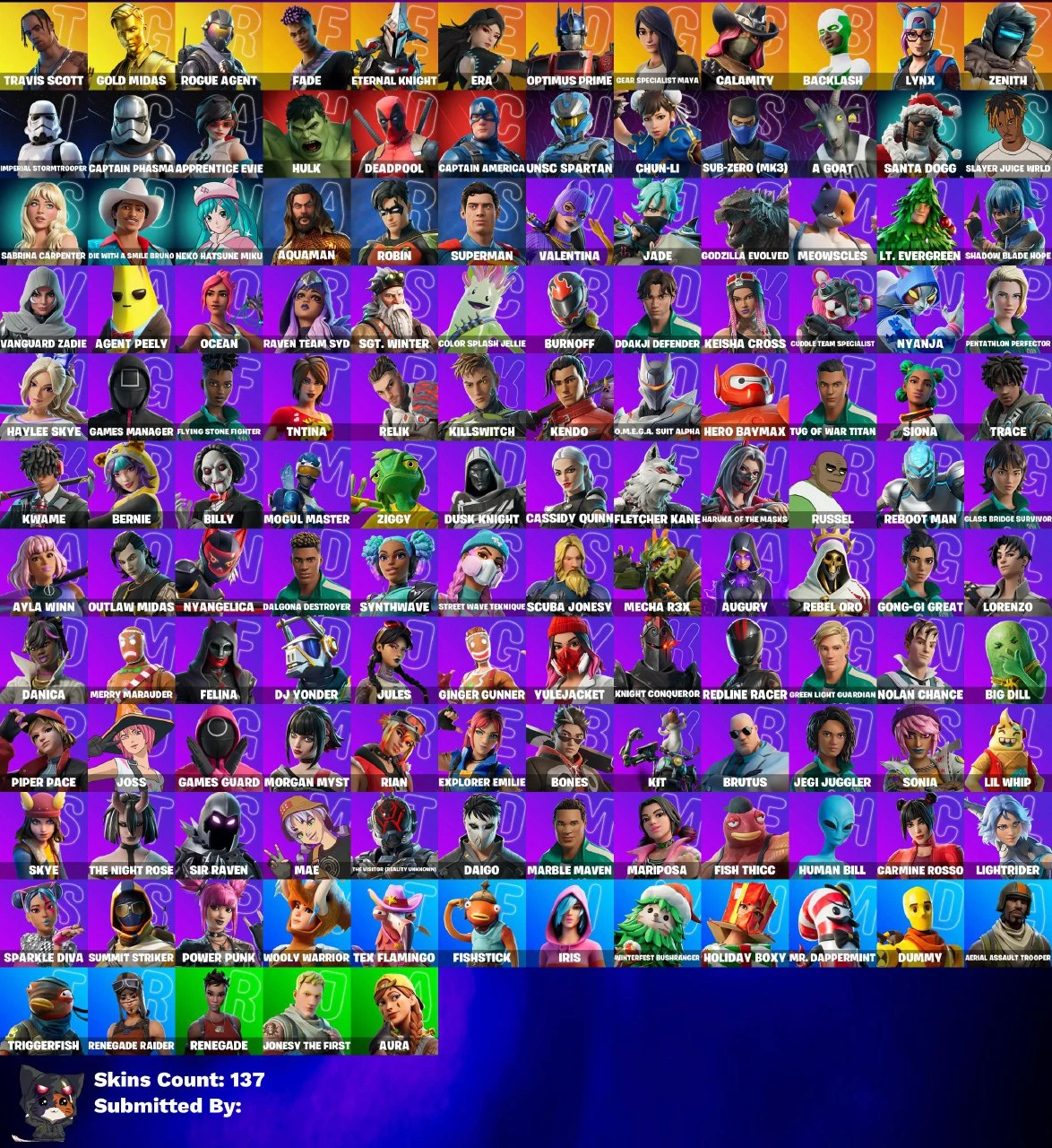 π₯π EXCLUSIVE OFFER ππ₯ 137 SKINS π TRAVIS SCOTT π RENEGADE RAIDER π AERIAL ASSAULT TROOPER π GOLD MIDAS π ROGUE AGENT π FADE π ETERNAL KNIGHT π ERA π OPTIMUS PRIME π GEAR SPECIALIST MAYA π CALAMITY π BACKLASH π LYNX π ZENITH π 5350 VB π FULL ACCESS π