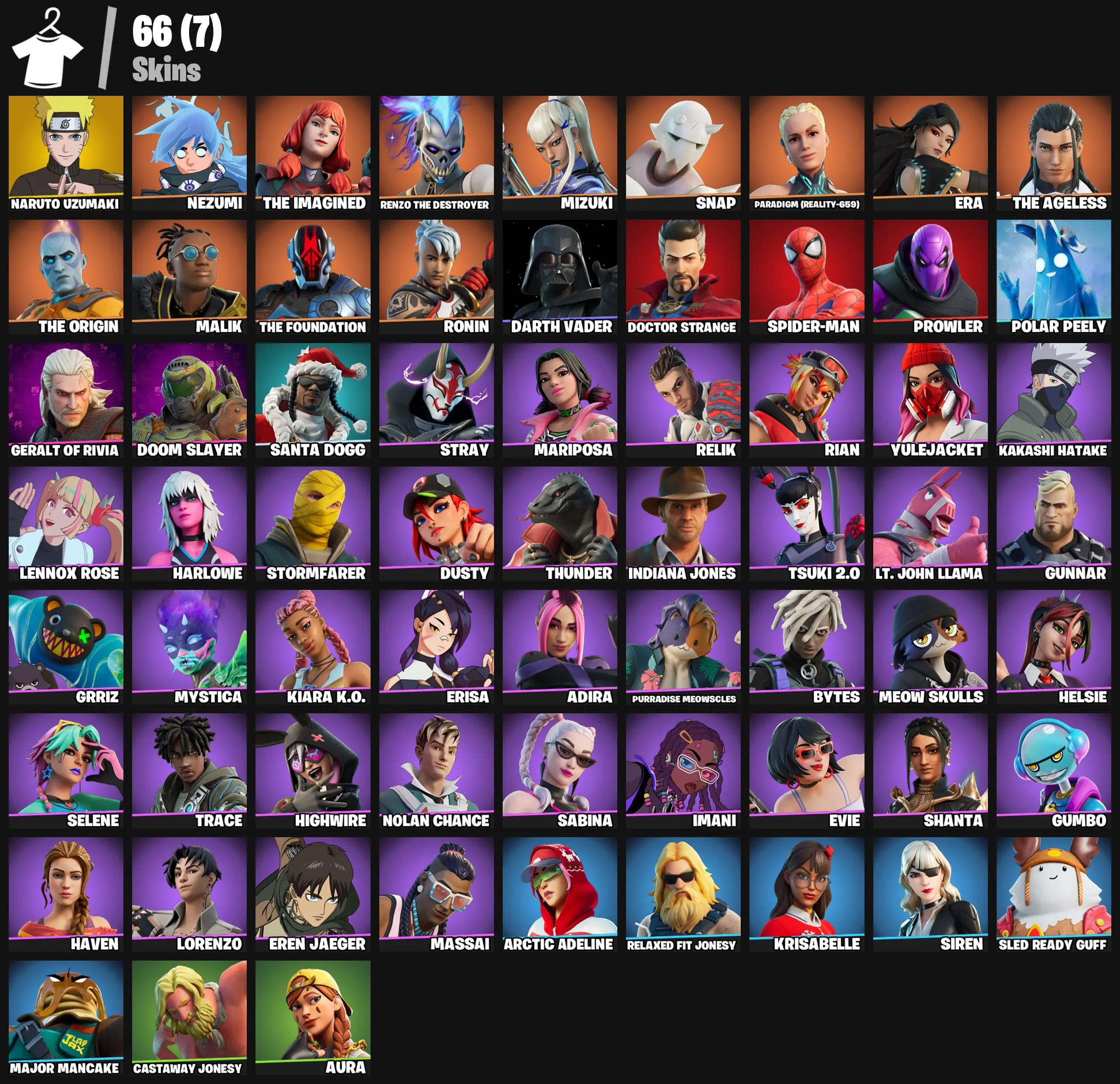 【66 SKINS】 (PC/PSN) AURA | SIREN | NARUTO UZUMAKI | KAKASHI HATAKE | SPIDER-MAN | DARTH VADER | INDIANA JONES !MKG03160