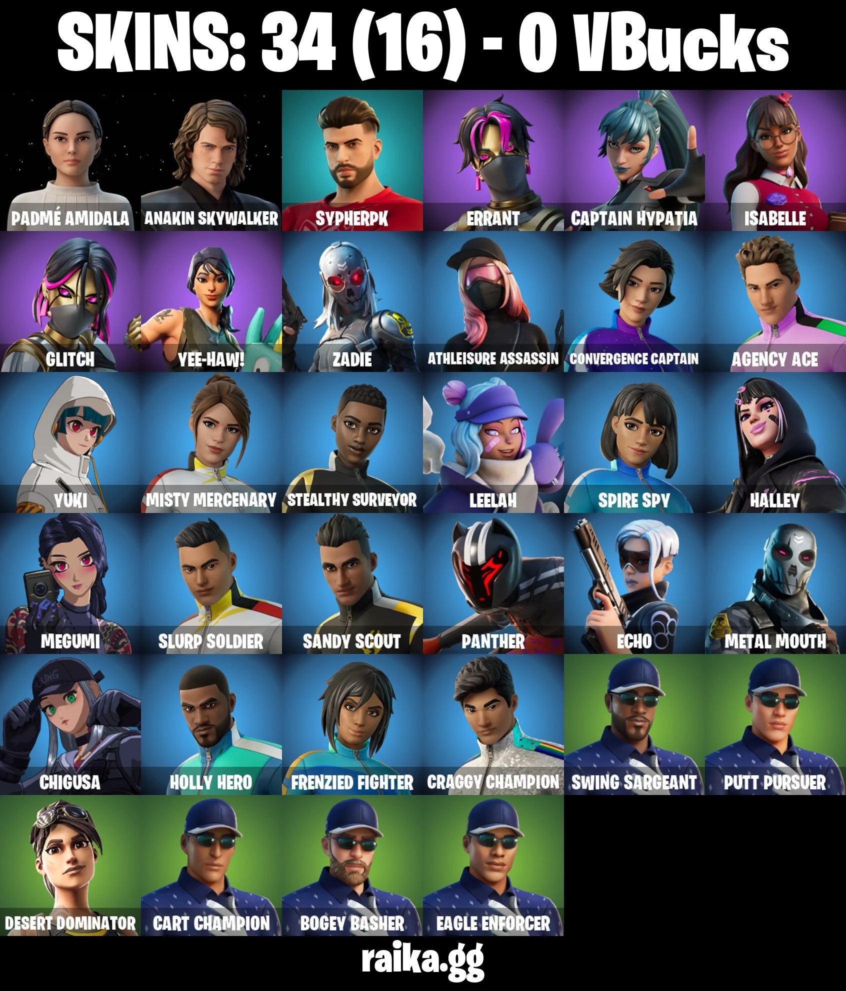 Original Email ✅ Inactive for 3 years | 34 skins | Padmé Amidala | Anakin Skywalker | SypherPK | Errant | Captain Hypatia | Isabelle | Glitch | Yee-Haw! | Zadie | Athleisure Assassin | 0 VB