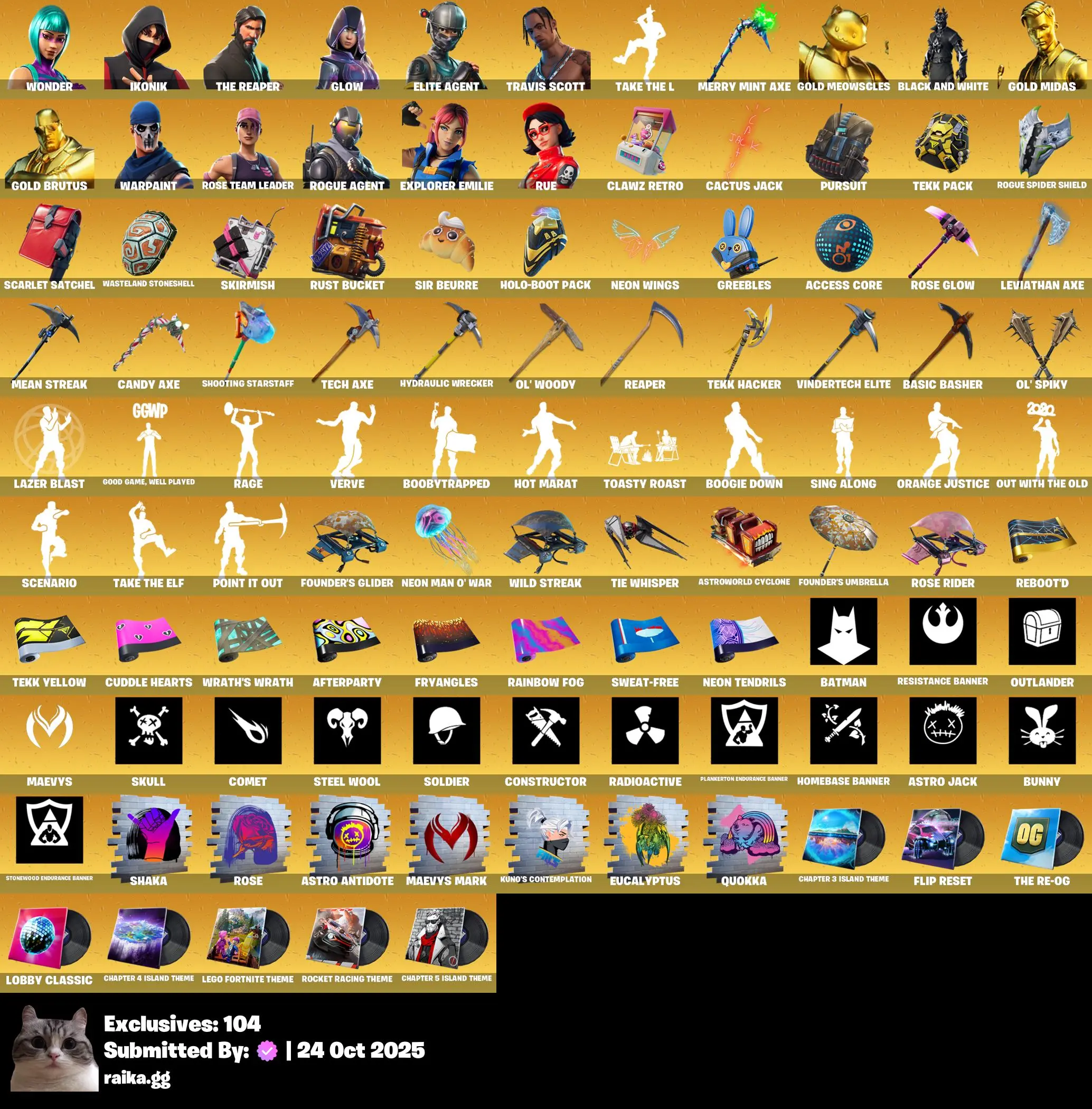[PC/] 318 skins | OG STW | Wonder | IKONIK | The Reaper | Glow | Elite Agent | Travis Scott | Gold Meowscles | Gold Midas | Gold Brutus | Rogu