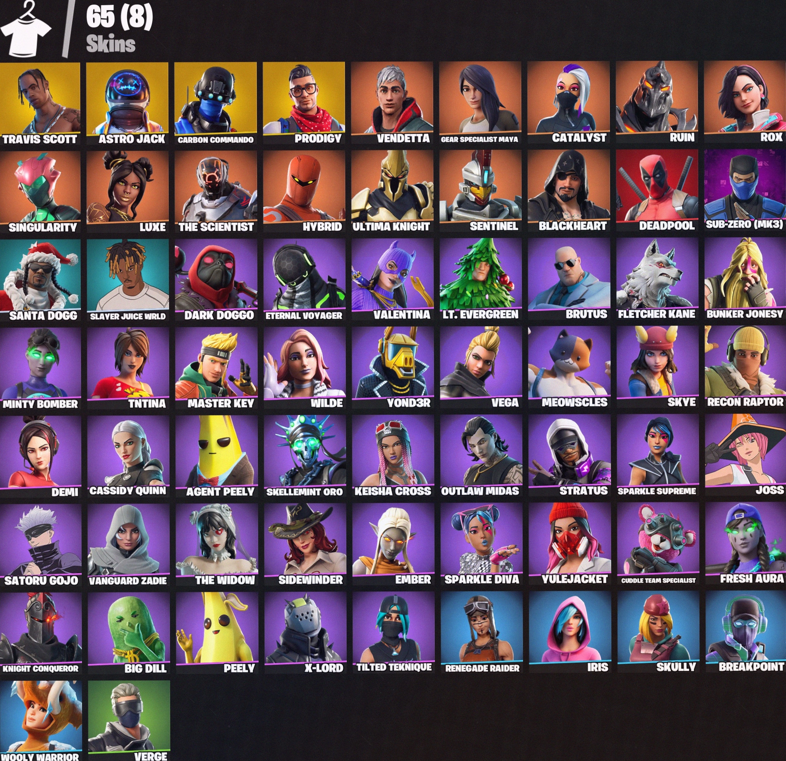 [PC] 65 skins+Travis Scott+Astro Jack+Renegade Raider+Carbon Commando+Prodigy+Vendetta+Gear Specialist Maya+Catalyst+Ruin+Rox+150 VB ⸱ PARENTAL CONTROL #ACC-165531