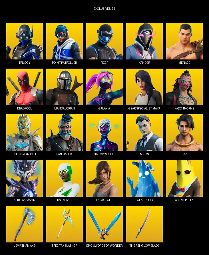 [PC] | 80 skins | 500 V-bucks | Leviathan Axe | Lara Croft | Trilogy | Point Patroller | Fixer | Xander | Menace | Deadpool | Mandalorian | #DAN5420