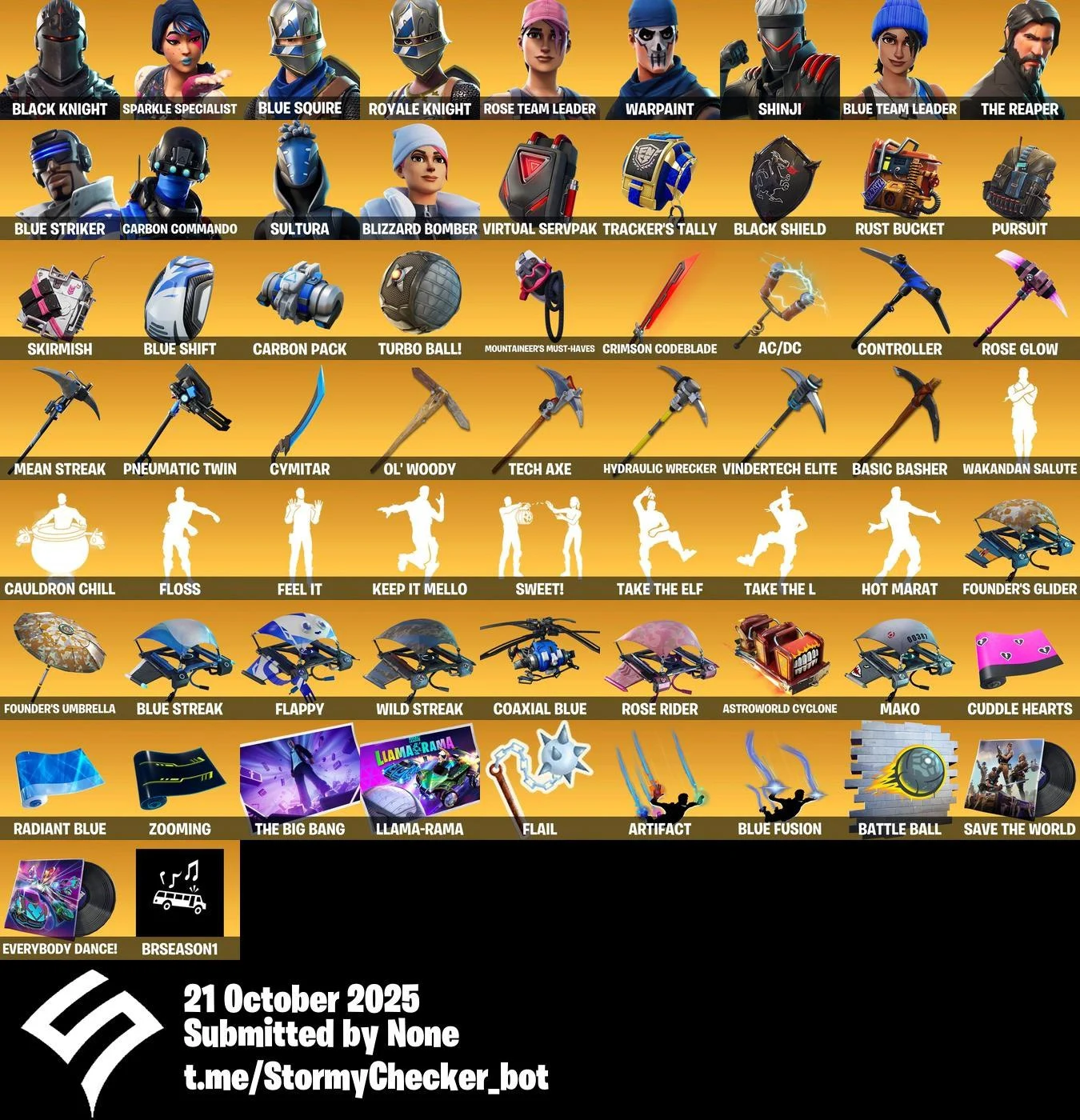 [PC] | 166 Skins | OG STW | Black Knight | Sparkle Specialist | Blue Squire | Royale Knight | Rose Team Leader | Warpaint | Crimson Codeblade | AC/DC | Controller | BRSeason1 | 0 VB