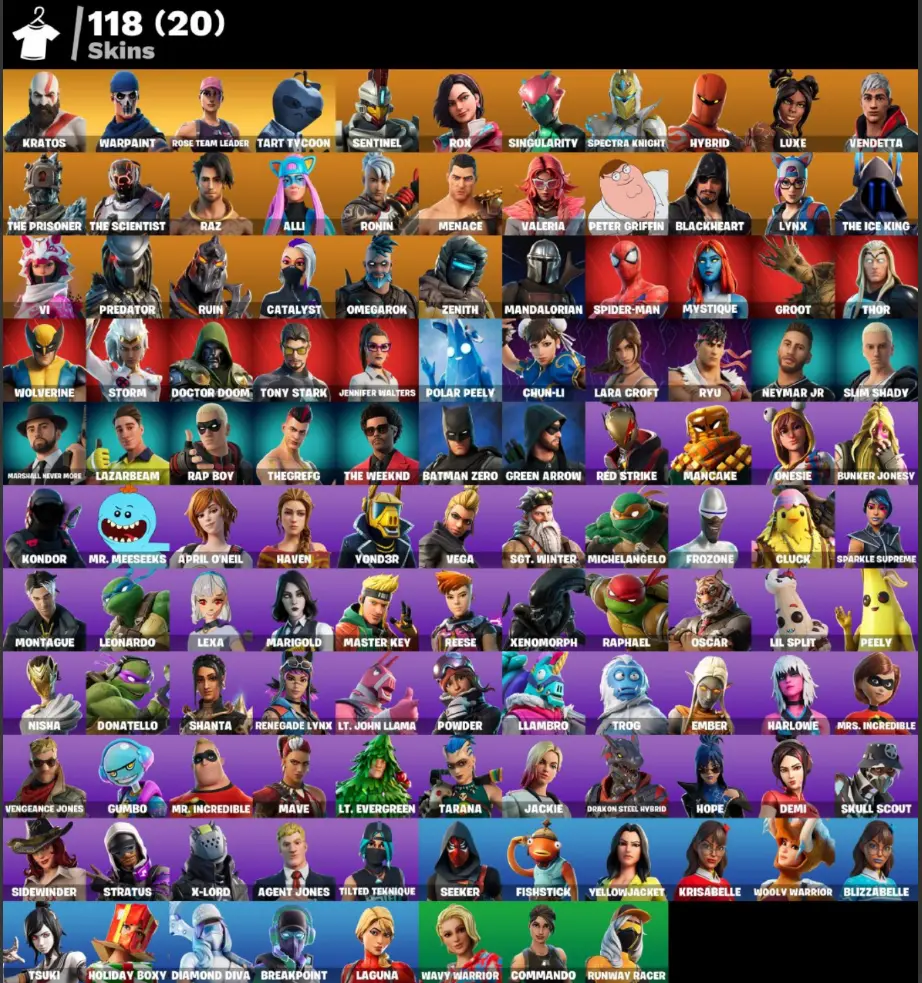 (PC PSN XBOX) 118 skins | LEVIATHAN AXE / CHUN-LI / LARA CROFT / RYU / OG STW | Kratos | Tart Tycoon | Sentinel | Rox | Singularity | Spectra Knight | Hybrid | Luxe | Vendetta | The Prisoner | 650 VB