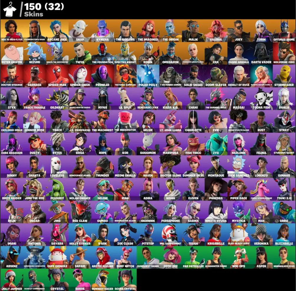 (PC PSN XBOX) 150 skins | NBA 75 High-Flyer | Frankenstein's Bride | Arcane Jinx | Snap | Kymera | The Ageless | The Imagined | The Origin | Malik | Valeria / HINATA HYUGA