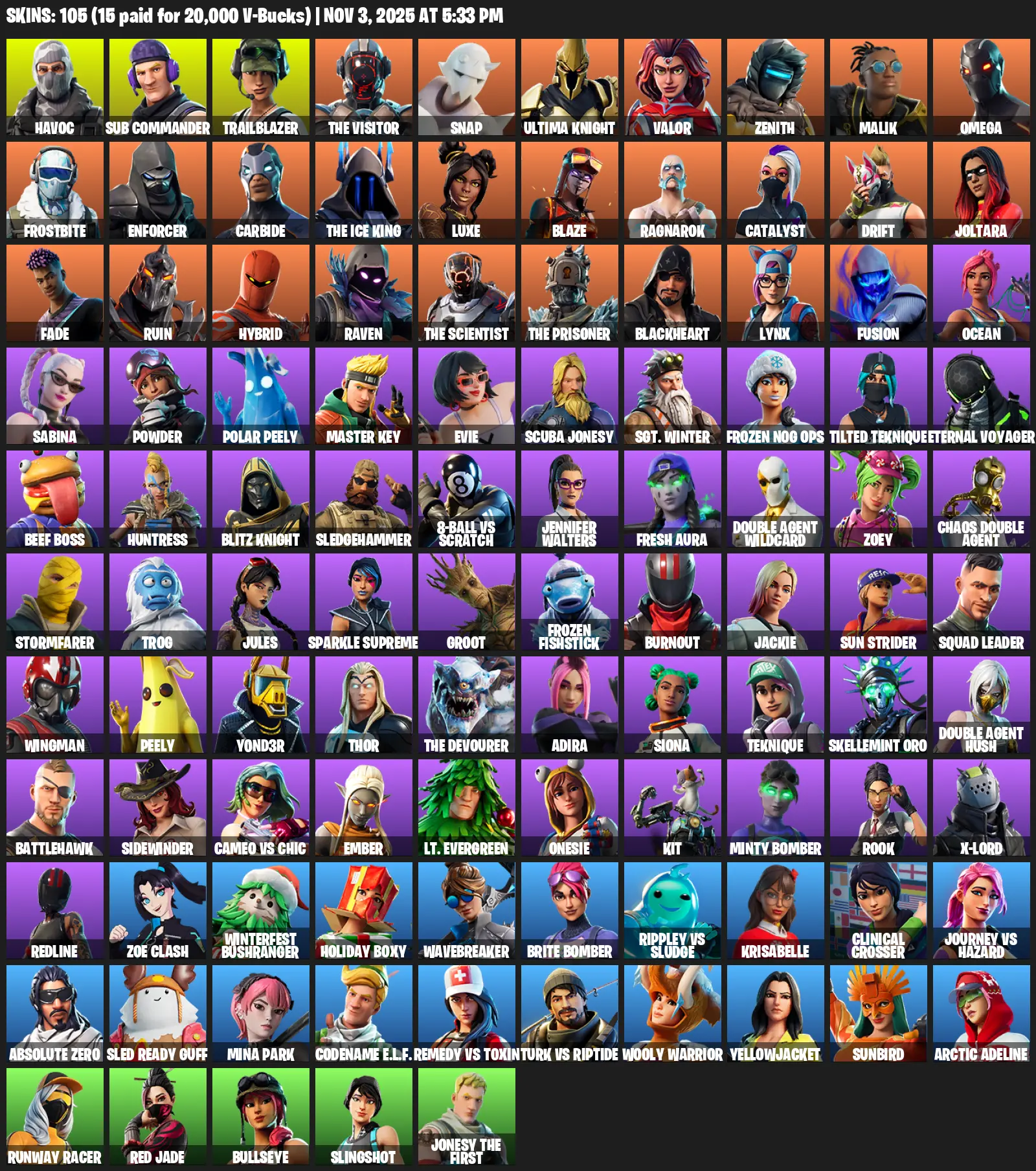 [PC/PSN] | 105 skins | Omega | Havoc | Sub Commander | Trailblazer | The Visitor | Snap | Ultima Knight | Valor | Zenith | Malik | #ILO5446 | #MBFN