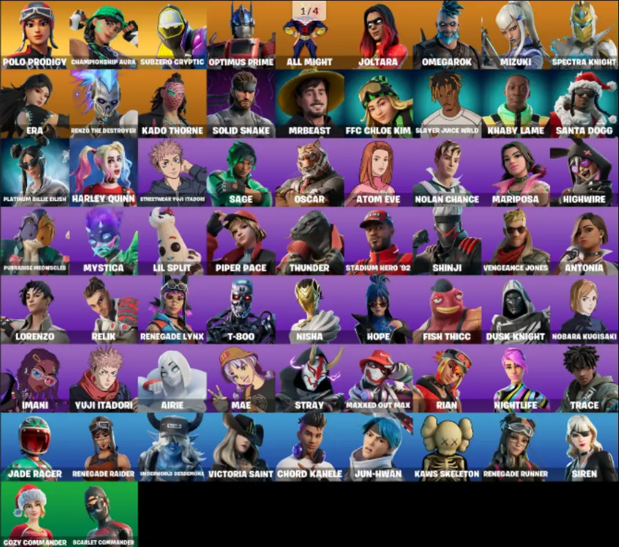 [PC/PSN] 65 skins | Polo Prodigy | Renegade Raider | Championship Aura | Subzero Cryptic | Optimus Prime | All Might | Joltara | Omegarok | Mizuki | 100 VB