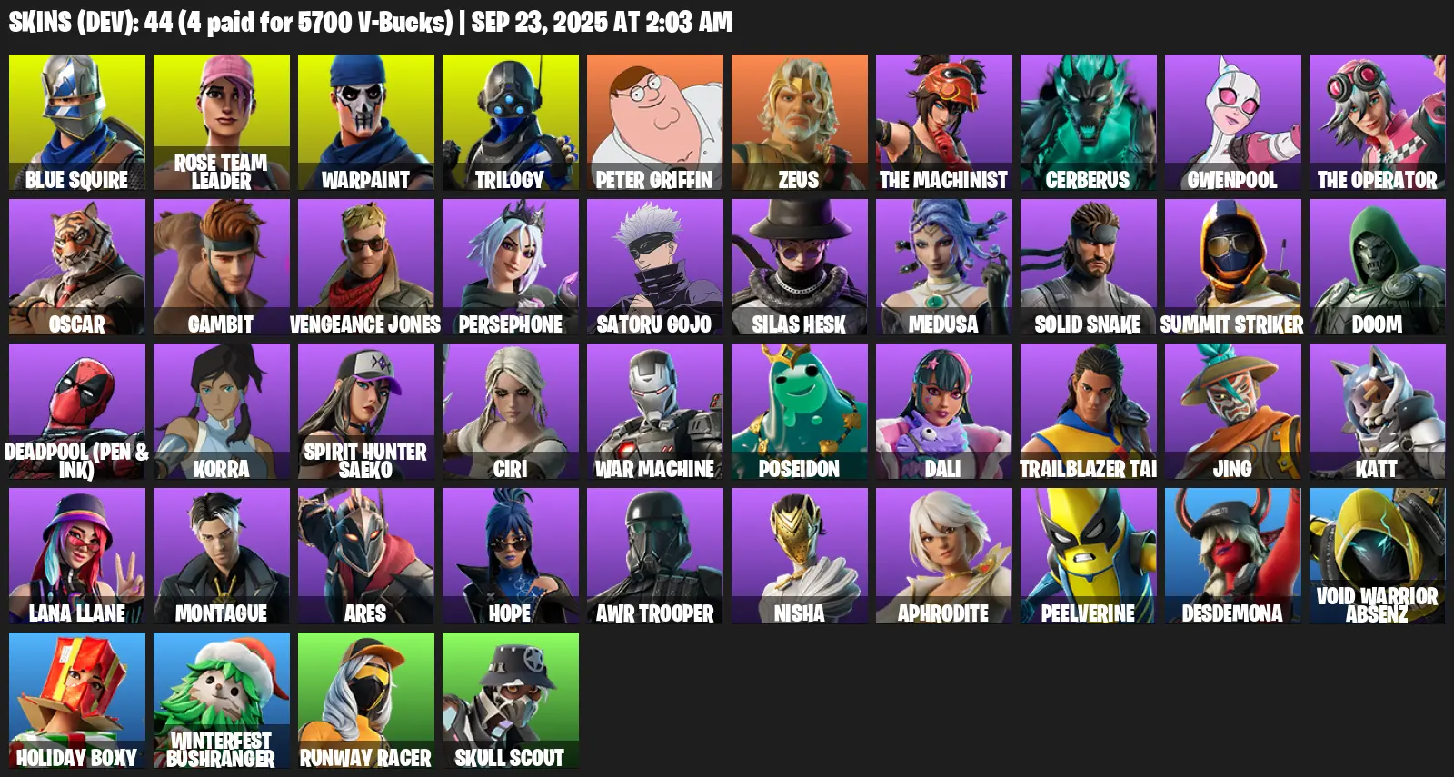 [PC/PSN] | 44 skins | OG STW | Blue Squire | Rose Team Leader | Warpaint | Trilogy | Peter Griffin | Zeus | The Machinist | #RHB6330 | #MBFN