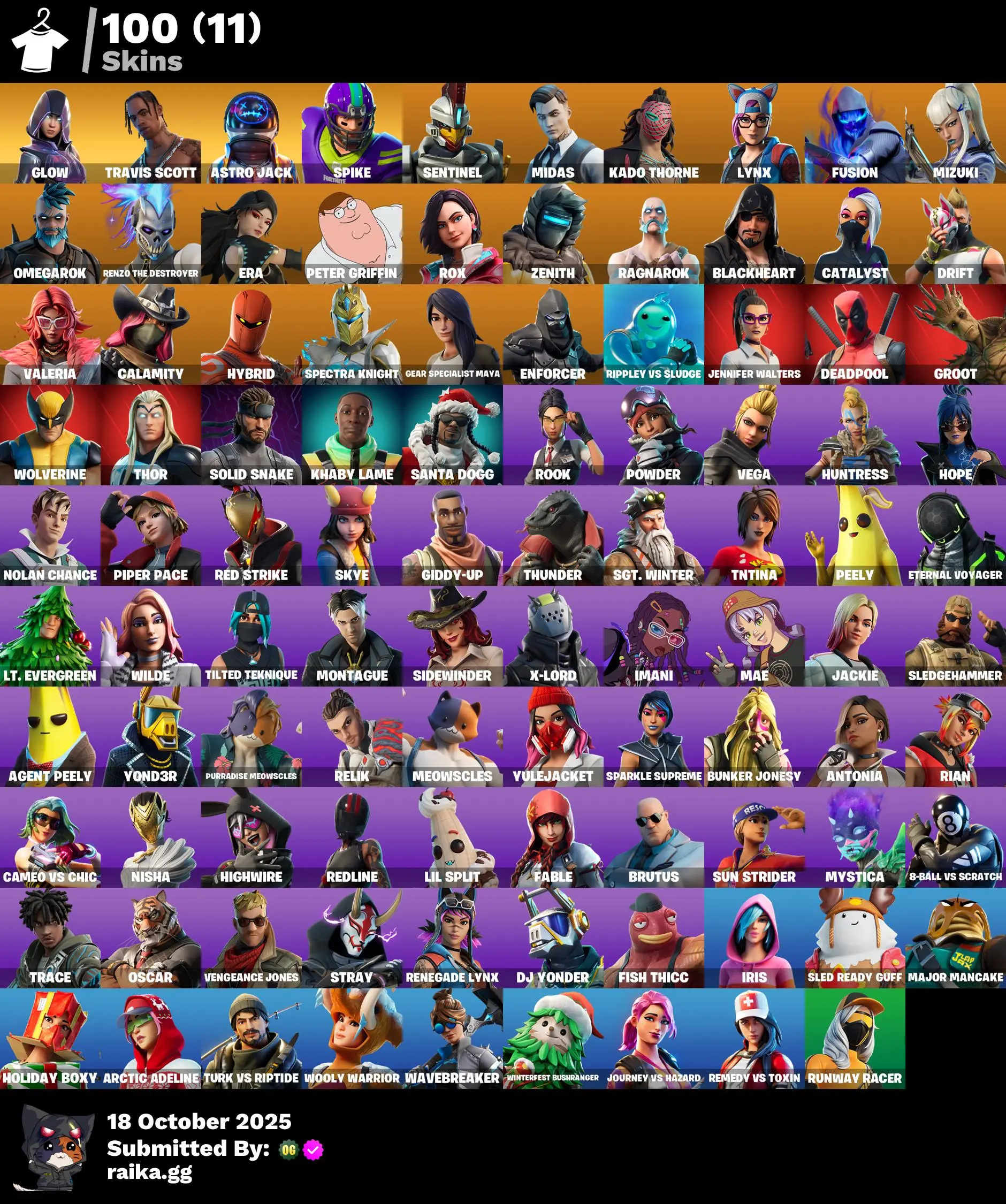 [PC/PSN/XBOX] 100 skins | Glow | Travis Scott | Astro Jack | Spike | Sentinel | Midas | Kado Thorne | Lynx | Fusion | Mizuki | Omegarok | Renzo the Destroyer | 50 VB