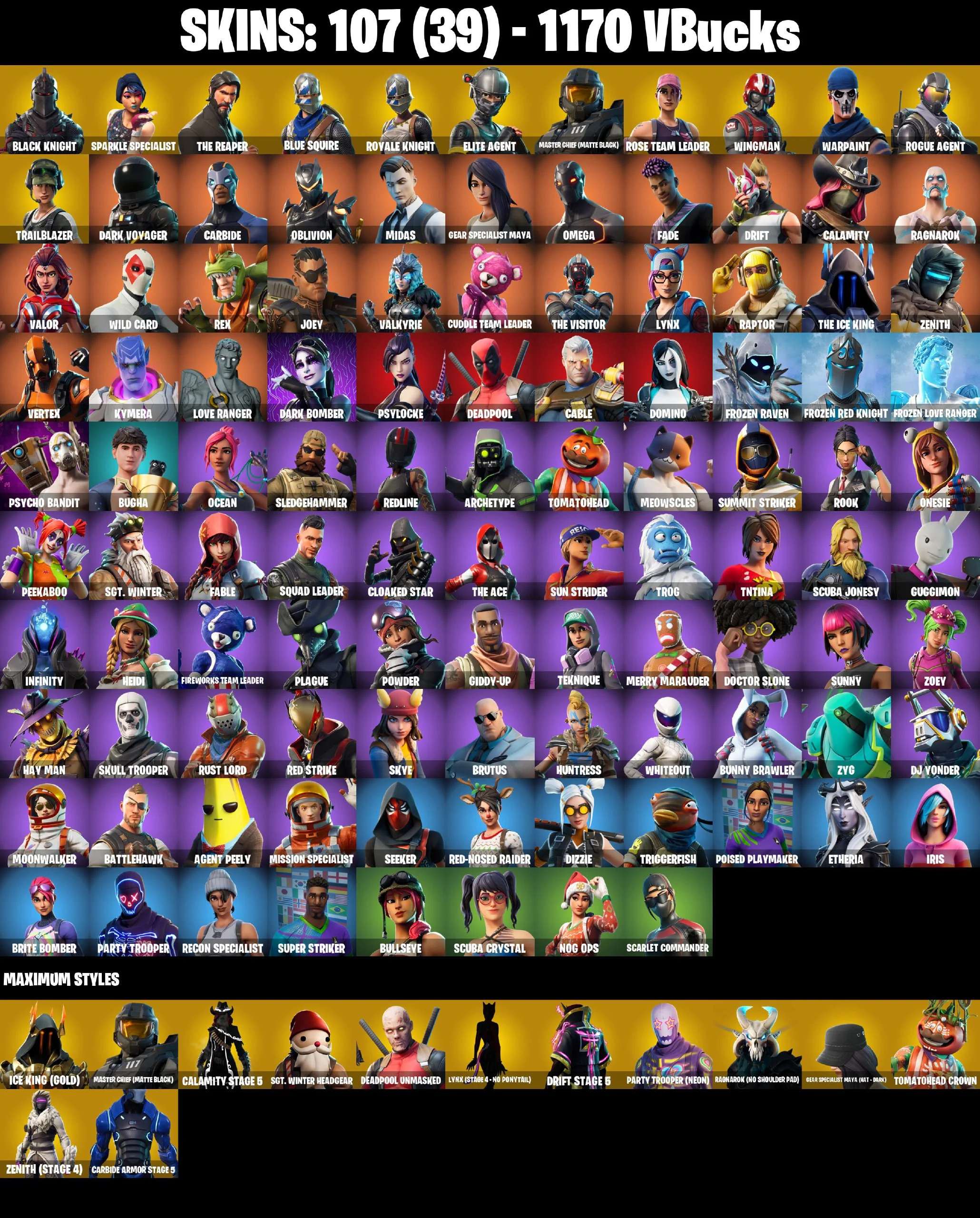 (PC/PSN/XBOX) 1170 VB) 107 SKINS / BLACK KNIGHT / SPARKLE SPECIALIST / THE REAPER / BLUE SQUIRE / ROYALE KNIGHT / ELITE AGENT