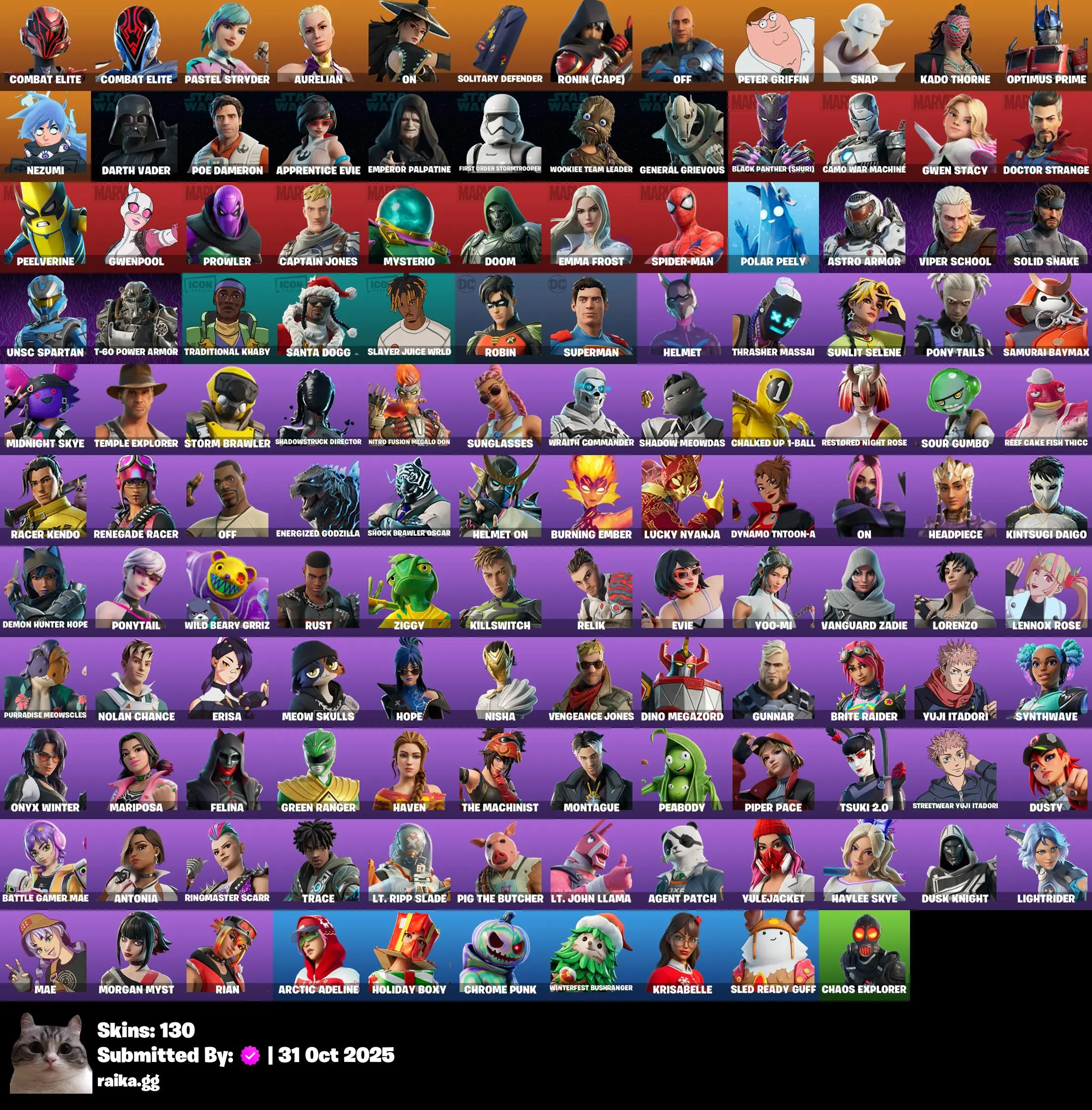 [PC/PSN/XBOX] 130 skins | Combat Elite | Combat Elite | Pastel Stryder | Aurelian | On | Solitary Defender | Ronin (Cape) | off | Peter Griffin | Snap