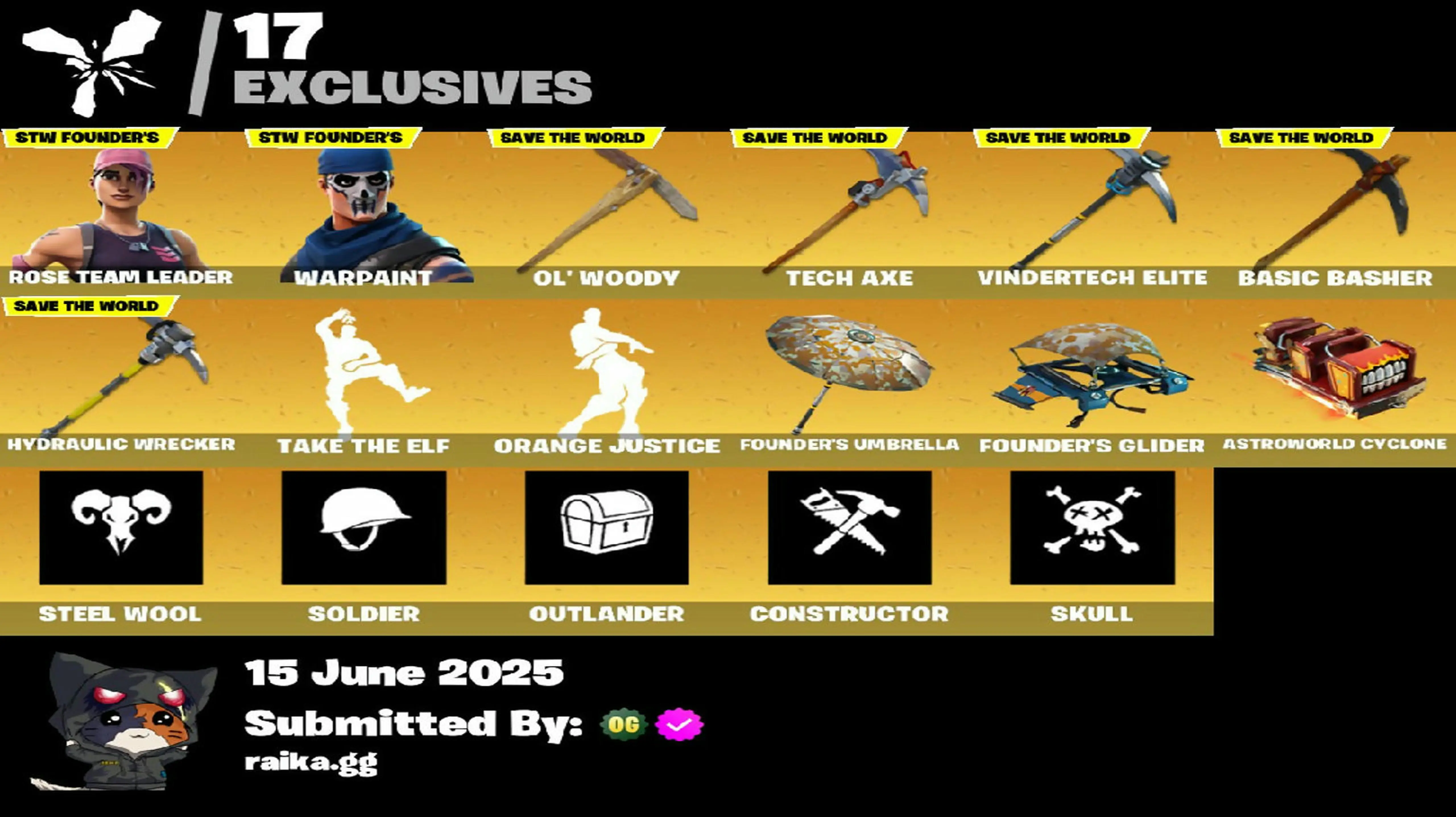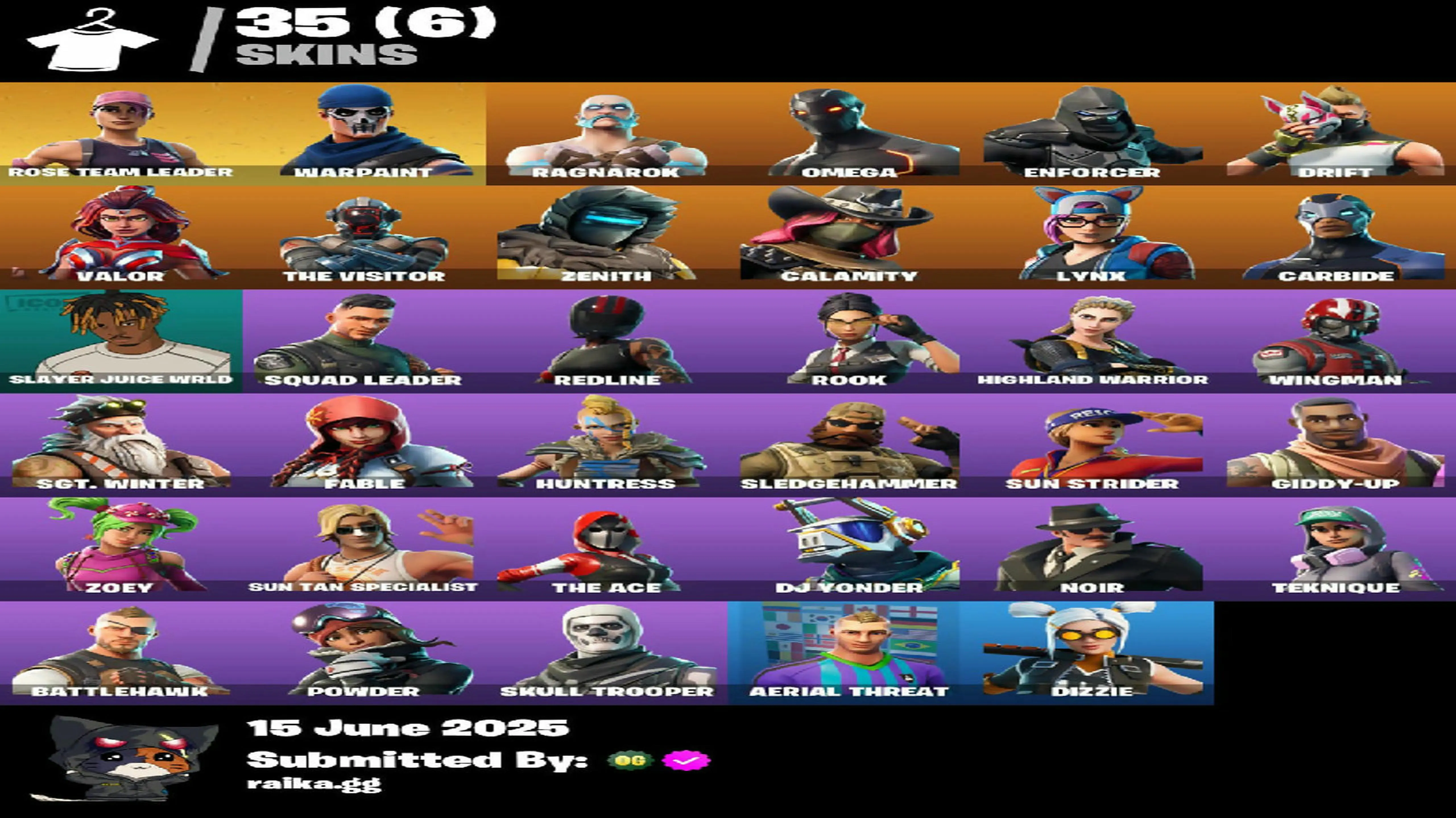 [PC/PSN/XBOX] 35 skins | OG STW | Ragnarok | Omega | Enforcer | Drift | Valor | The Visitor | Zenith | Calamity | Lynx | Carbide | Slayer Juice WRLD | 105 VB