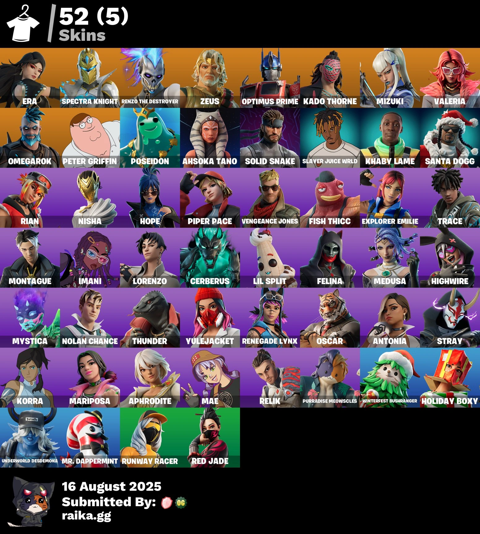 [PC/PSN/XBOX] 52 skins | Nanner Ringer | Era | Spectra Knight | Renzo the Destroyer | Zeus | Optimus Prime | Kado Thorne | Mizuki | Valeria | 500 VB