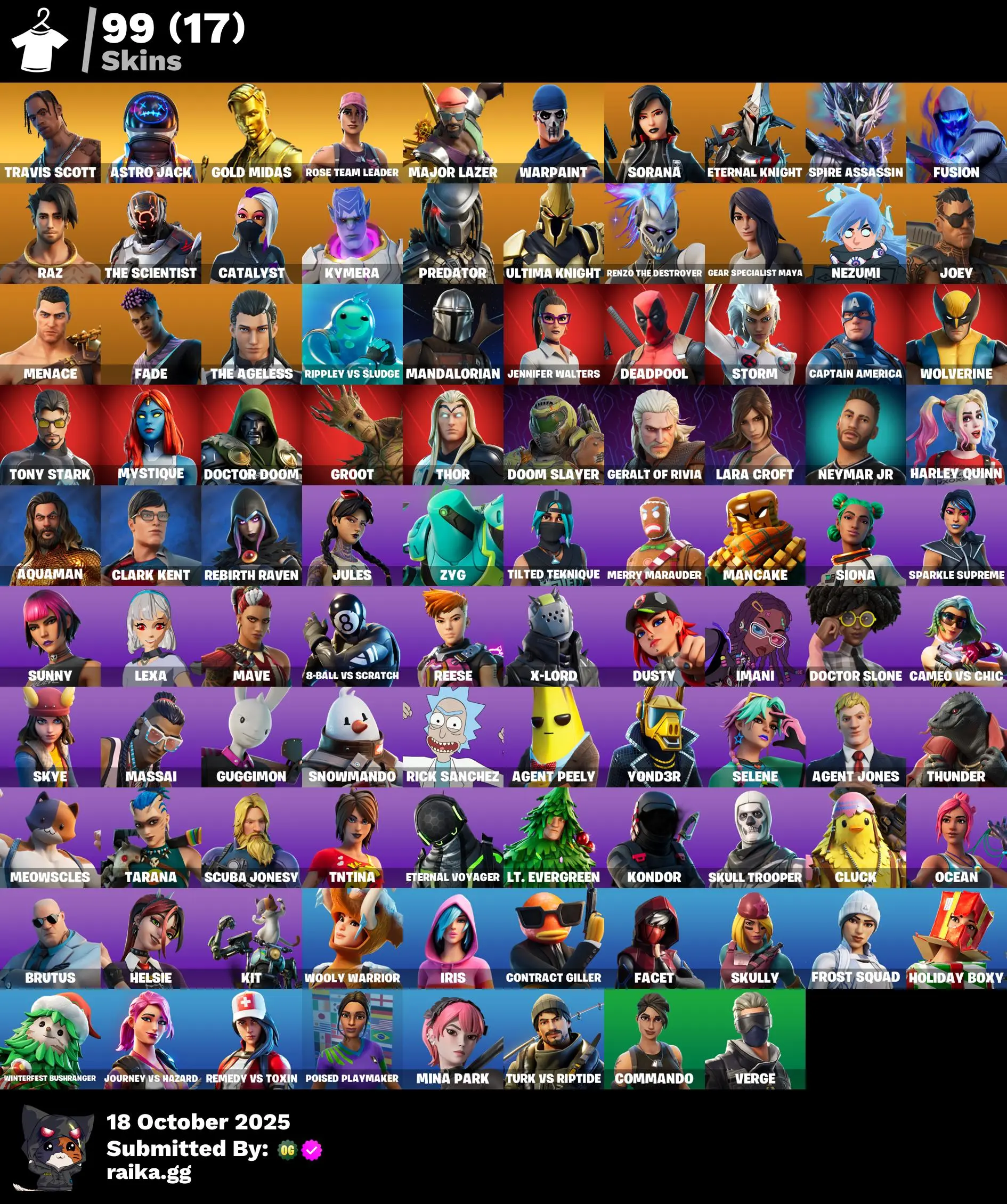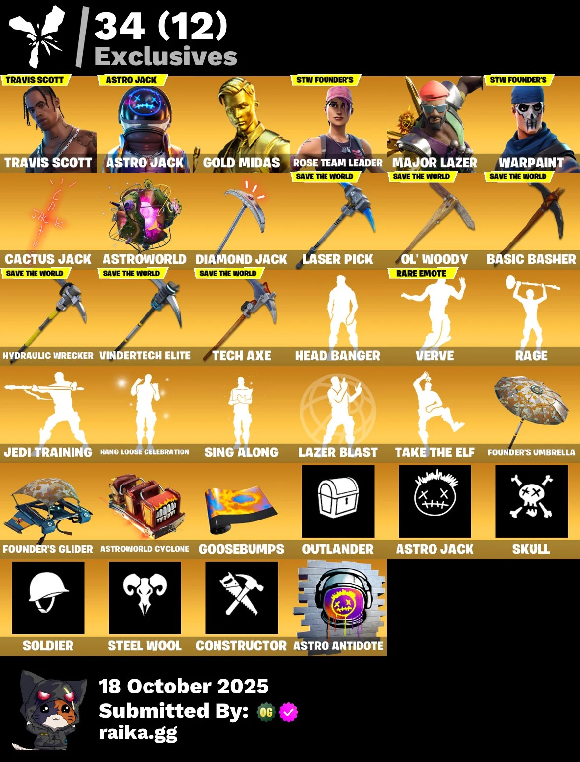 [PC/PSN/XBOX] 99 skins | OG STW | Travis Scott | Astro Jack | Gold Midas | Major Lazer | Sorana | Eternal Knight | Spire Assassin | Fusion | Raz | 1000 VB