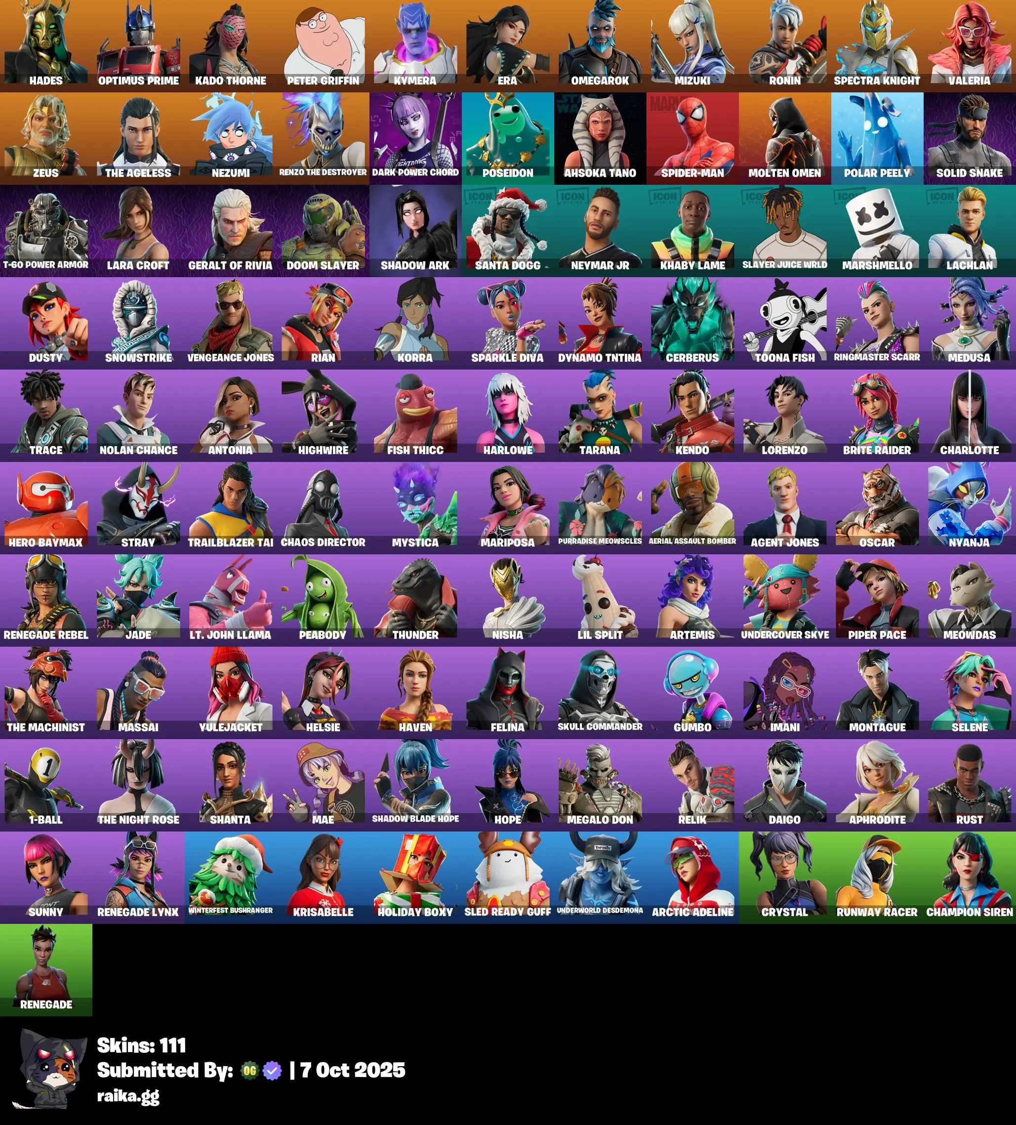 [PC/PSN/XBOX] ( Parental ) 111 skins | Hades | Optimus Prime | Kado Thorne | Peter Griffin | Kymera | Era | Omegarok | Mizuki | Ronin | Spectra Knight | Valeria | Zeus | 800 VB