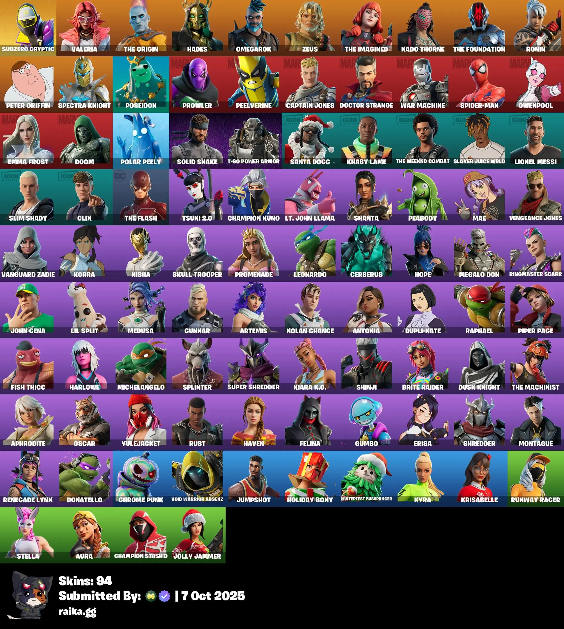 [PC/PSN/XBOX]( Parental ) 94 skins | Subzero Cryptic | Valeria | The Origin | Hades | Omegarok | Zeus | The Imagined | Kado Thorne | The Foundation | Ronin | 150 VB