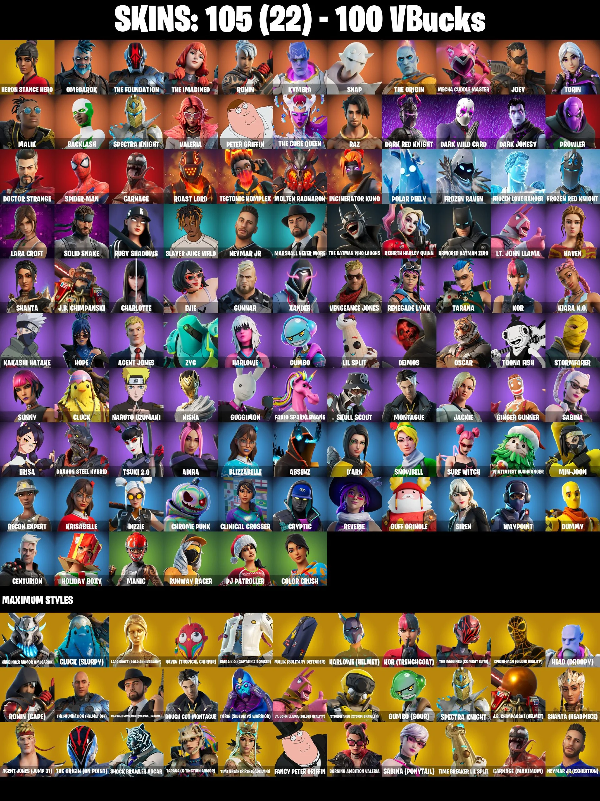 (PC/XBOX) 100 VB) 105 SKINS / HERON STANCE HERO / OMEGAROK / THE FOUNDATION / THE IMAGINED / RONIN / KYMERA / SNAP / THE ORIGIN /