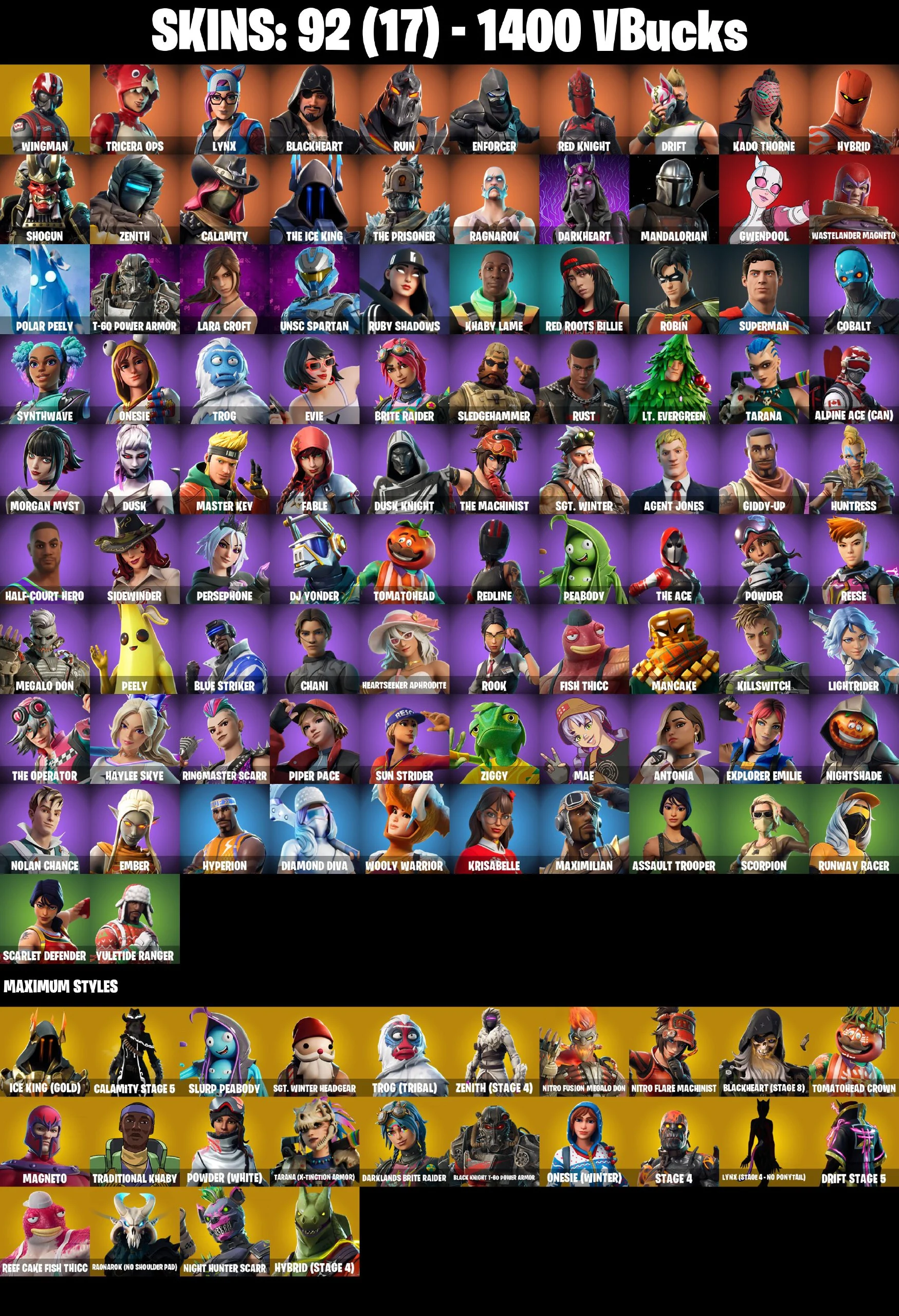 (PC/XBOX) 1400 VB) 92 SKINS / WINGMAN / TRICERA OPS / LYNX / BLACKHEART / RUIN / ENFORCER / RED KNIGHT / DRIFT / KADO THORNE / HYBRID / SHOGUN /