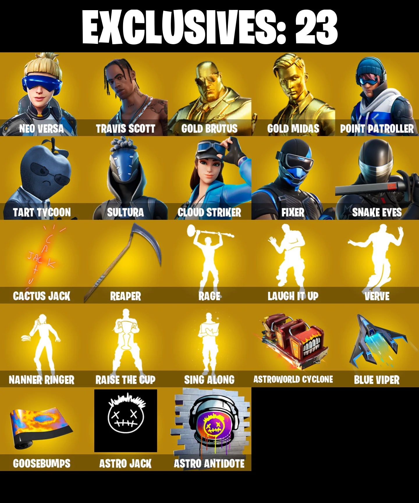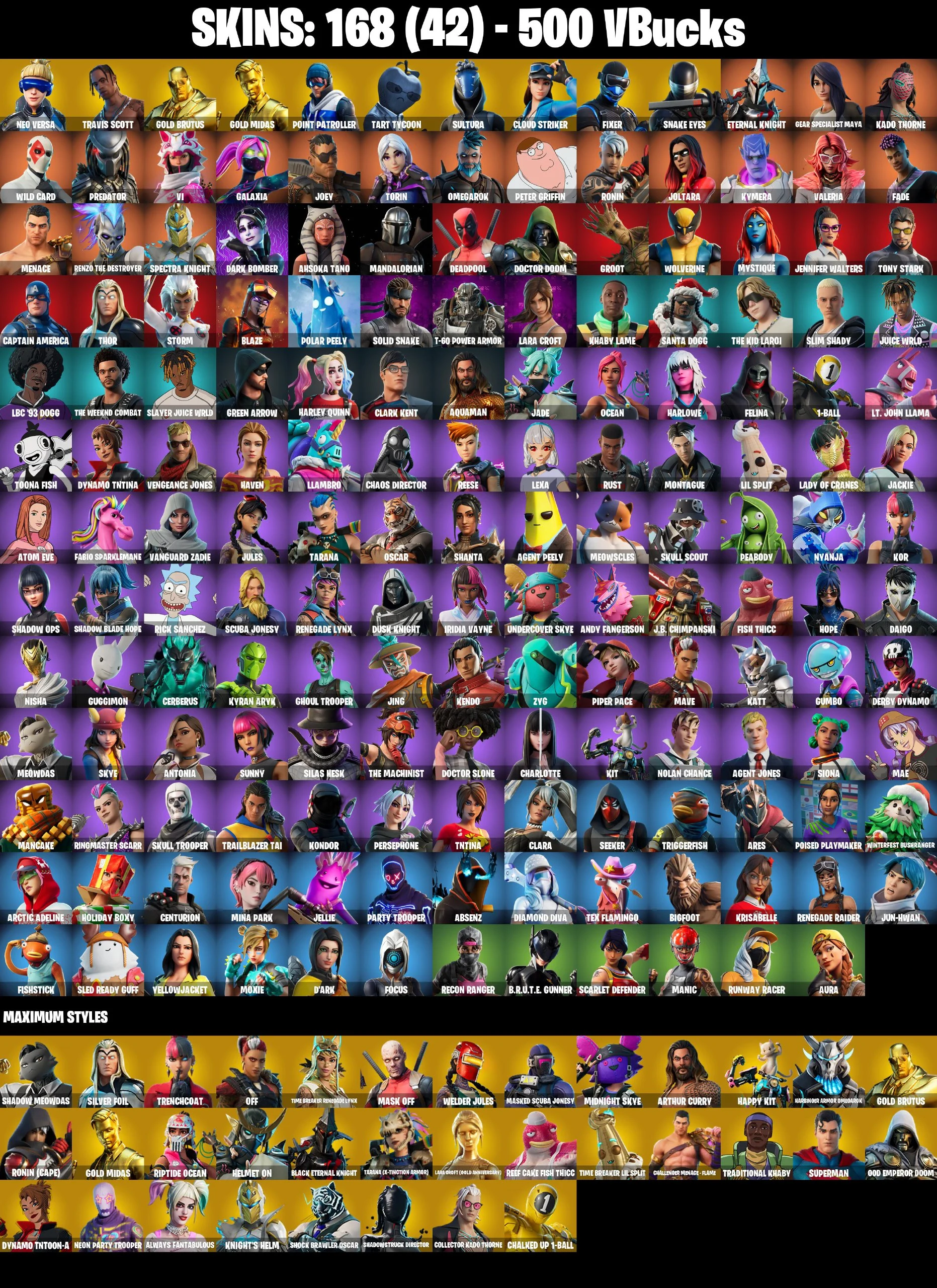 [PC/XBOX] 168 SKINS ⚡️Travis Scott ⚡️ Neo Versa ⚡️ Renegade Raider ⚡️ Gold Brutus ⚡️ Gold Midas ⚡️ Point Patroller ⚡️ Tart Tycoon ⚡️ Sultura