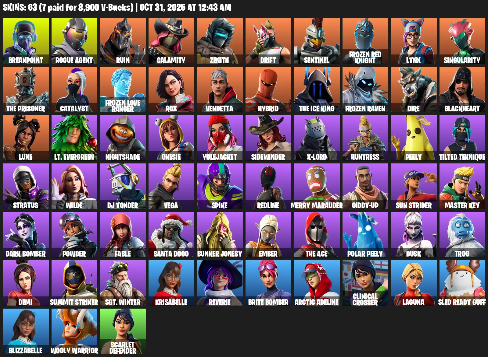 [PC/XBOX] | 63 skins | Breakpoint | Rogue Agent | Ruin | Calamity | Zenith | Drift | Sentinel | Frozen Red Knight | Lynx | #BFB0421 | #MBFN