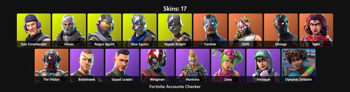 PC/XBOX/PSN 17 Skins⚡ | Havoc | Blue Squire | Royale Knight | Omega | Sub Commander | Rogue Agent | Carbide | Drift | Valor | The Visitor | Battlehawk