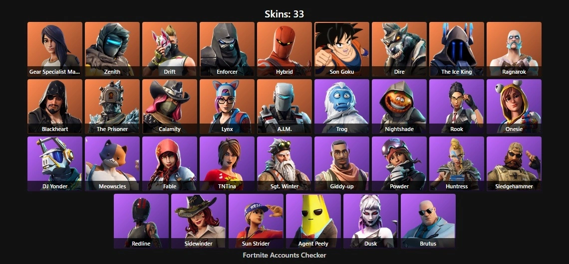 PC/XBOX/PSN 33 Skins⭐️ | Gear Specialist Maya | Zenith | Drift | Enforcer | Hybrid | Son Goku | Dire | The Ice King | Ragnarok | Blackheart | The Prisoner