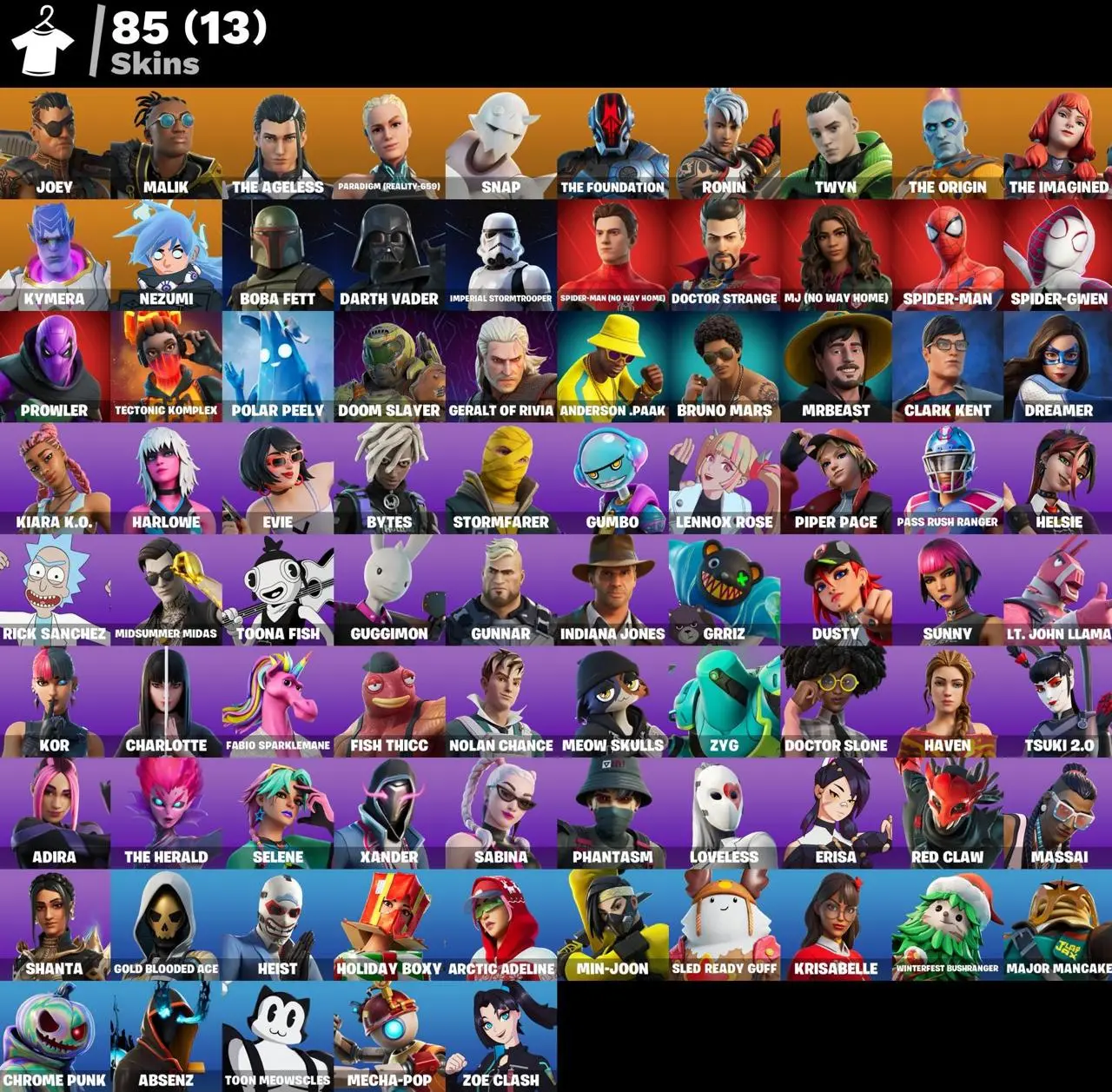 PSN-PC-XBOX MAIL CAN CHANGE 85 SKINS ⸱ DREAMER ⸱ CLARK KENT ⸱ RICK ⸱ PHANTASM ⸱ BRUNO MARS ⸱ MIDSUMMER MIDAS ZK589