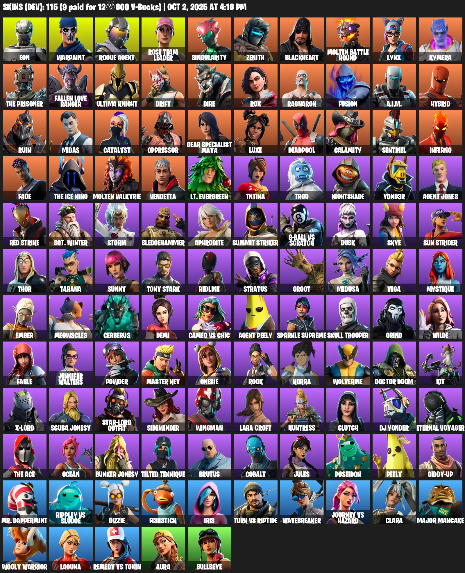 [PSN/XBOX/PC] 115 Skins | Eon | Warpaint | Rogue Agent | Rose Team Leader | Singularity | Zenith | Blackheart | Molten Battle Hound | Lynx | Kymera | The Prisoner | Fallen Love Ranger | Ultima Knight | Drift | Dire | Rox | Ragnarok | Fusion | A.I.M.