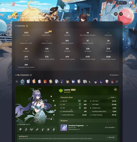 O jogo é gratuito e está disponível para PC, mobile, PlayStation e Xbox. Os personagens de Genshin Impact são obtidos através do sistema gacha do jogo usando Primogems, que os jogadores coletam por meio de missões, exploração e eventos. Construir um elenco forte exige um investimento de tempo consistente, e o progresso está ligado aos sistemas de nível da conta em vez de apenas aos personagens individuais.