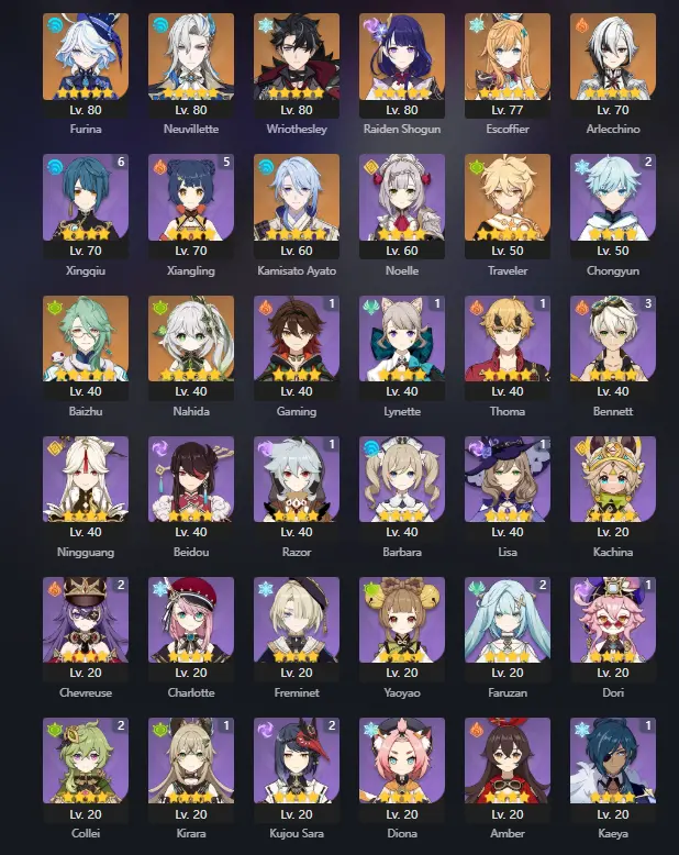AR51 / NA {12X 5 STAR LEGENDS} Neuvillette / Furina / Wriothesley / Raiden / Escoffier / Arlecchino / {2-WEAPON} + Honkai mssh1060
