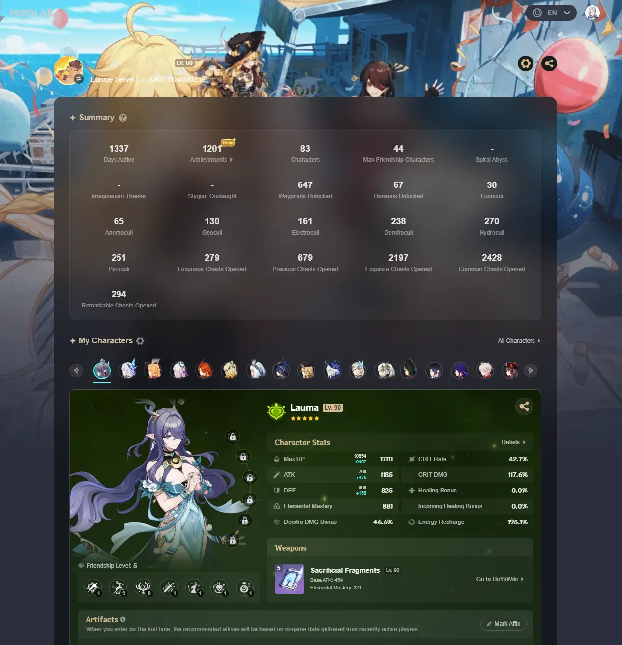 #GE879 Europe AR60 | LEGS:69 | Neuvillette C3+Furina C2+Clorinde C2+Nahida+Yelan+Raiden+Kazuha+Hu Tao+Ganyu+Venti+Ayaka+Arlecchino+Ayato+Itto+Tartaglia | LEG HEROES/WEAPONS: 34/19
