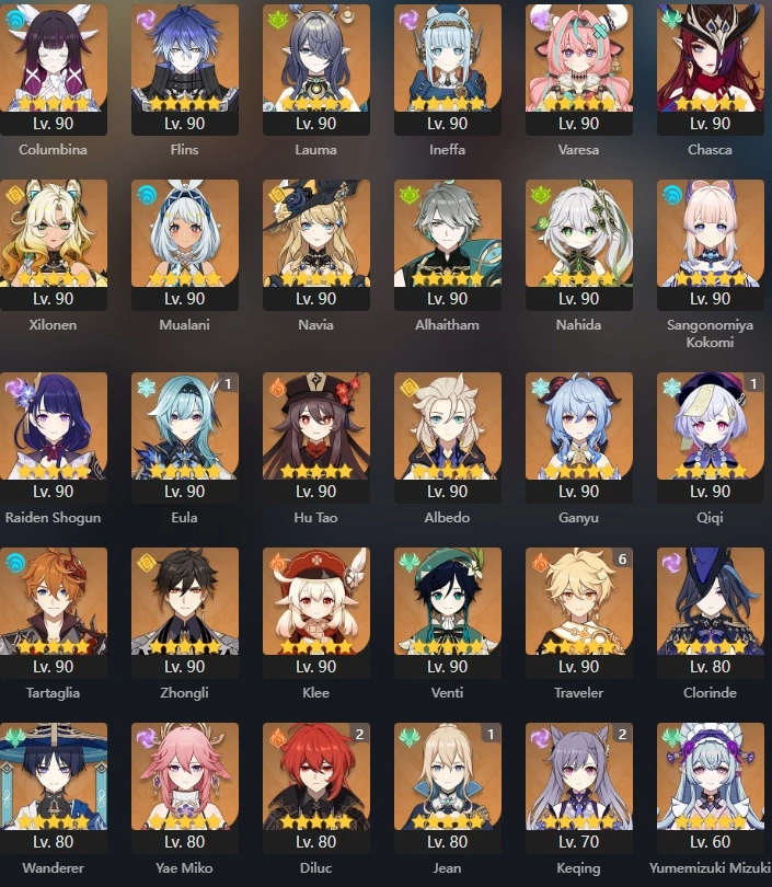 #GK608 Europe AR60 | LEG:56|Columbina,Flins,Lauma,Ineffa, Hu Tao,Varesa,Chasca,Xilonen,Mualani,Alhaitham+Signa,Ganyu+Signa,Diluc C2,Keqing C2,Eula C1,Qiqi C1,Jean C1