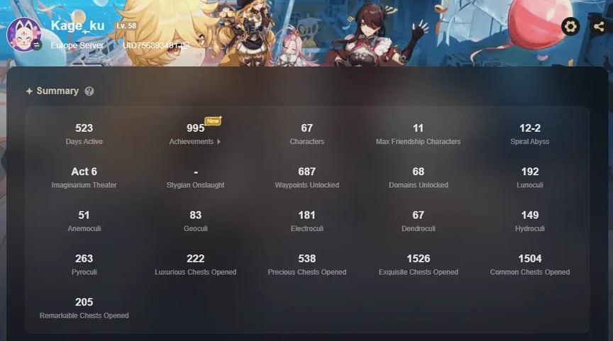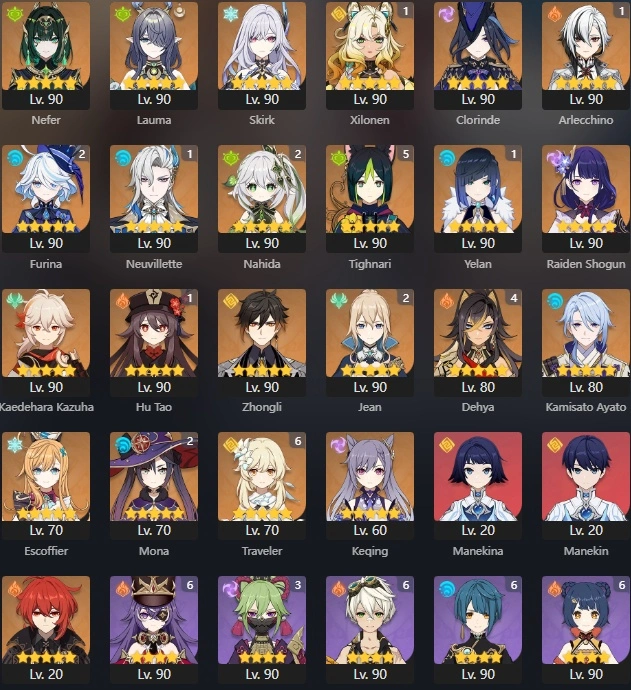 #GK614 Europe AR60 |LEG:65|Skirk+Signa,Furina C2+Signa,Nefer,Lauma,Arlecchino C1+Signa,Neuvillette C1+Signa, Yelan C1+Signa, Hu Tao C1+Signa,Tighnari C5, Dehya C4,Nahida C2, Jean C2