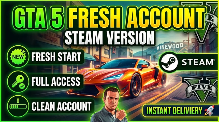 Contas GTA V Steam incluem a licença do jogo vinculada a um perfil Steam, junto com uma conta associada ao Rockstar Social Club para acesso ao GTA Online. Essas contas vêm com progresso do personagem, saldo de GTA$, Rank, propriedades possuídas, veículos e todos os itens do jogo vinculados à versão Steam do jogo.