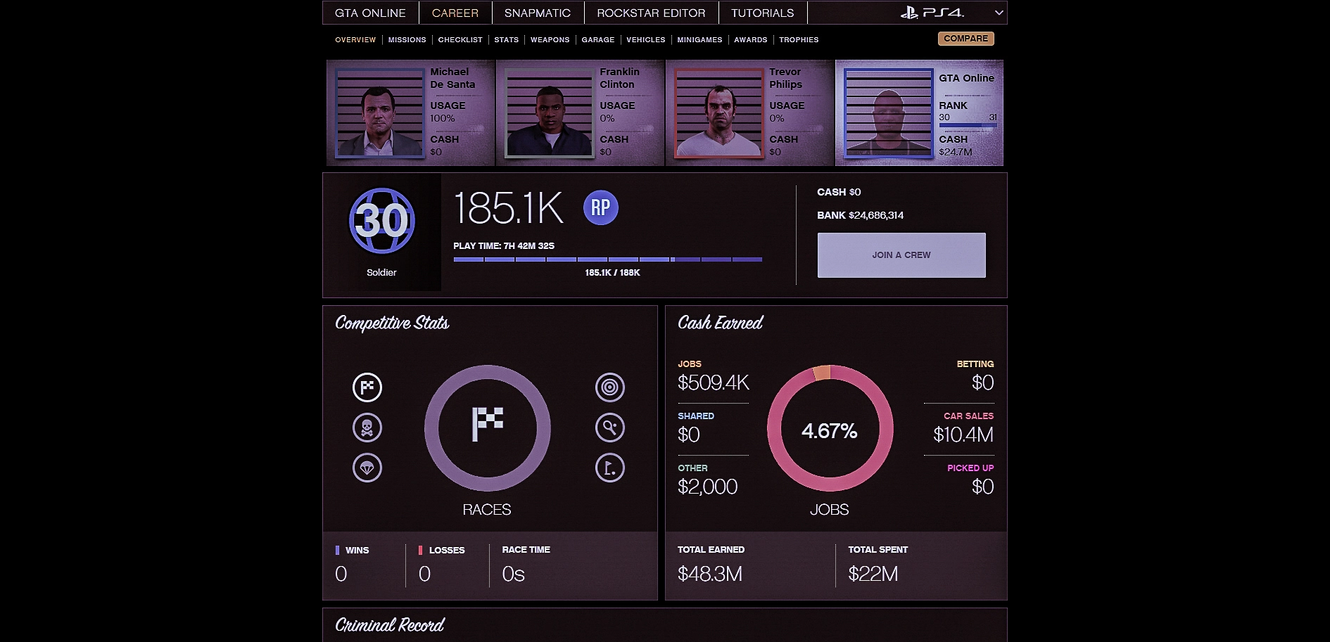 ⚔️ PS4 ⚔️ 100M Total 📝 (Cash + Cars) 🏅 30 RP Rank 🪅 Level 30 ✔️ Full Access ⚡ Instant Delivery Millionaire Ultimate Wealth #zwb6ds